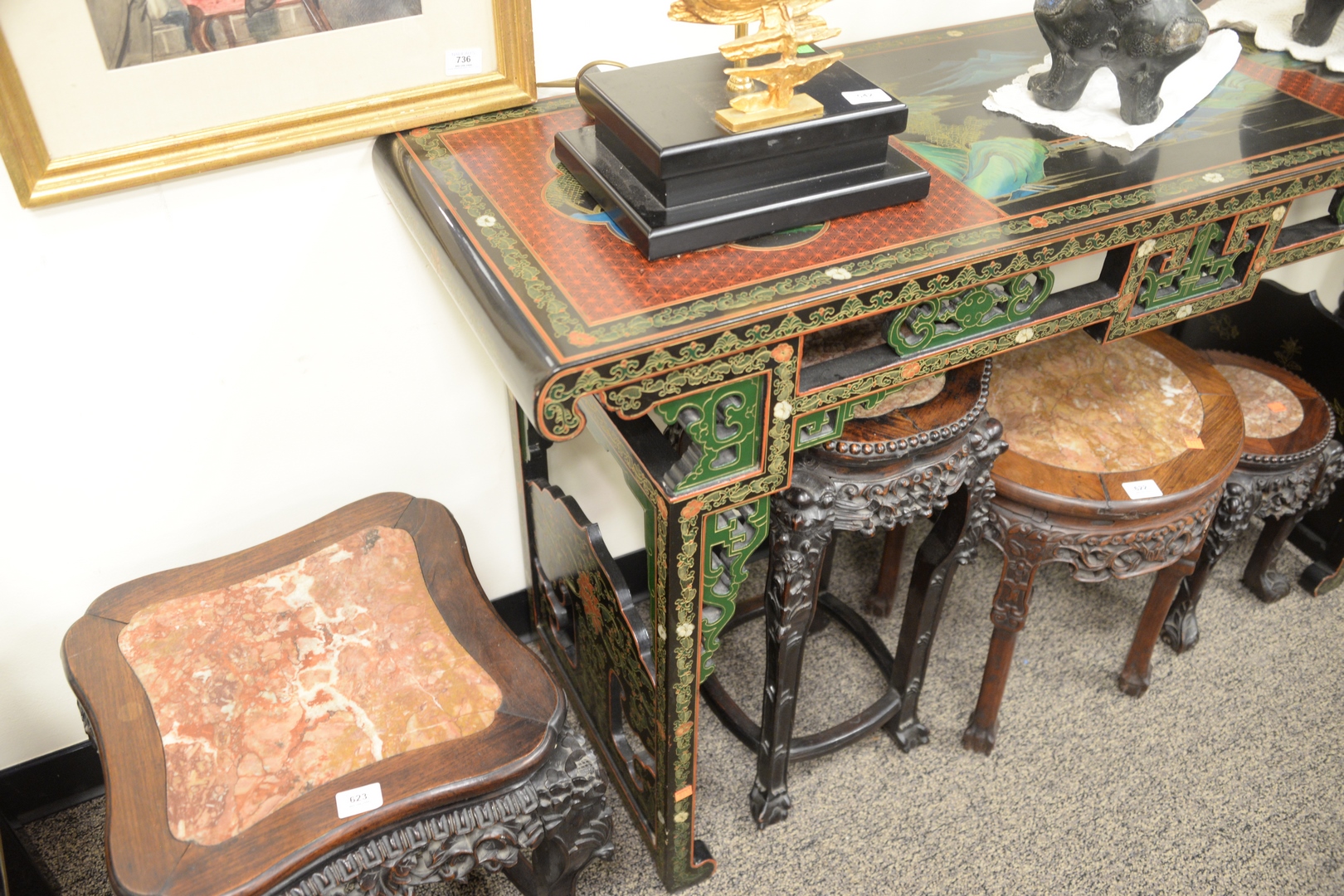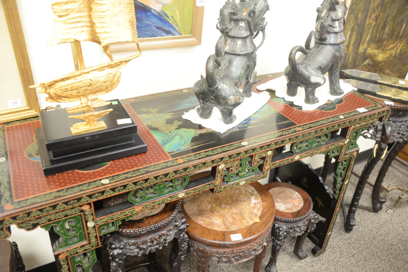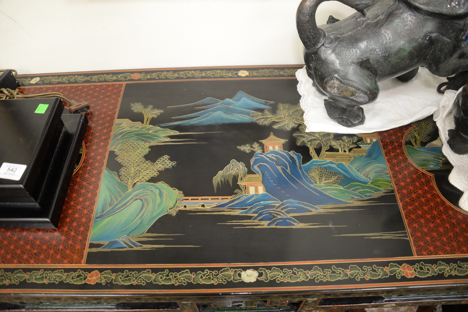 Chinese Alter Table, overall painted with scenes, height 33 inches, top 19 x 55.