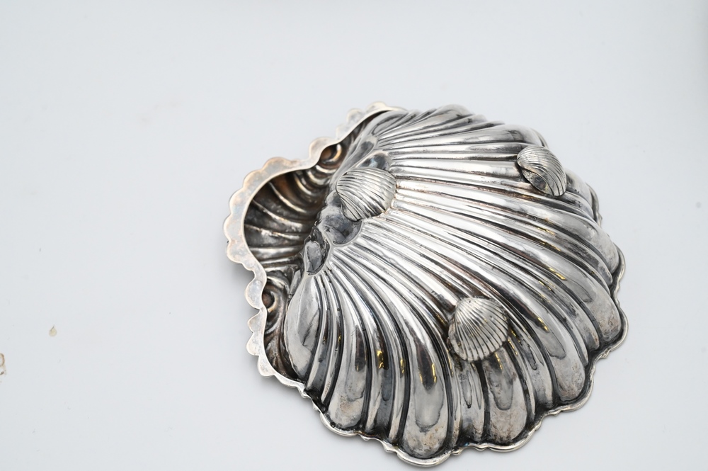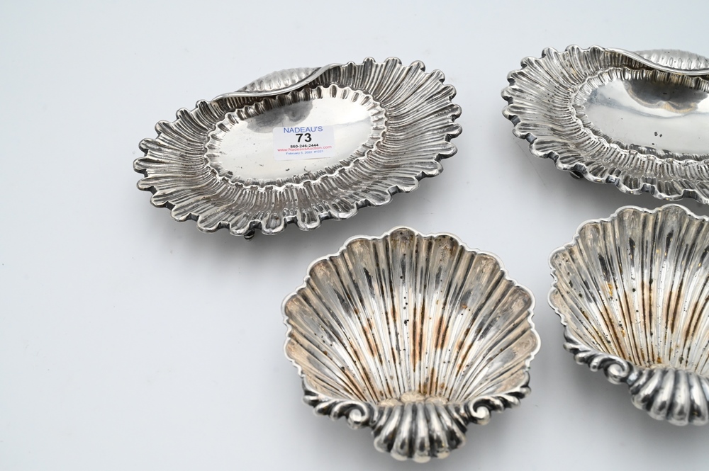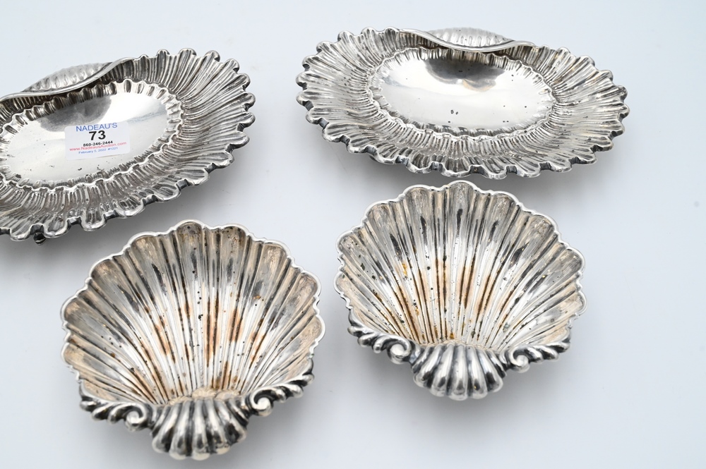 Lot 73: Four Silver Shell Dishes, two marked Mergulhao and two marked Missiaglia, lengths 5.5″ – 8″, 22.9 t.oz.