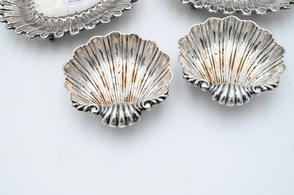 Four Silver Shell Dishes, two marked Mergulhao and two marked Missiaglia, lengths 5.5″ – 8″, 22.9 t.oz.