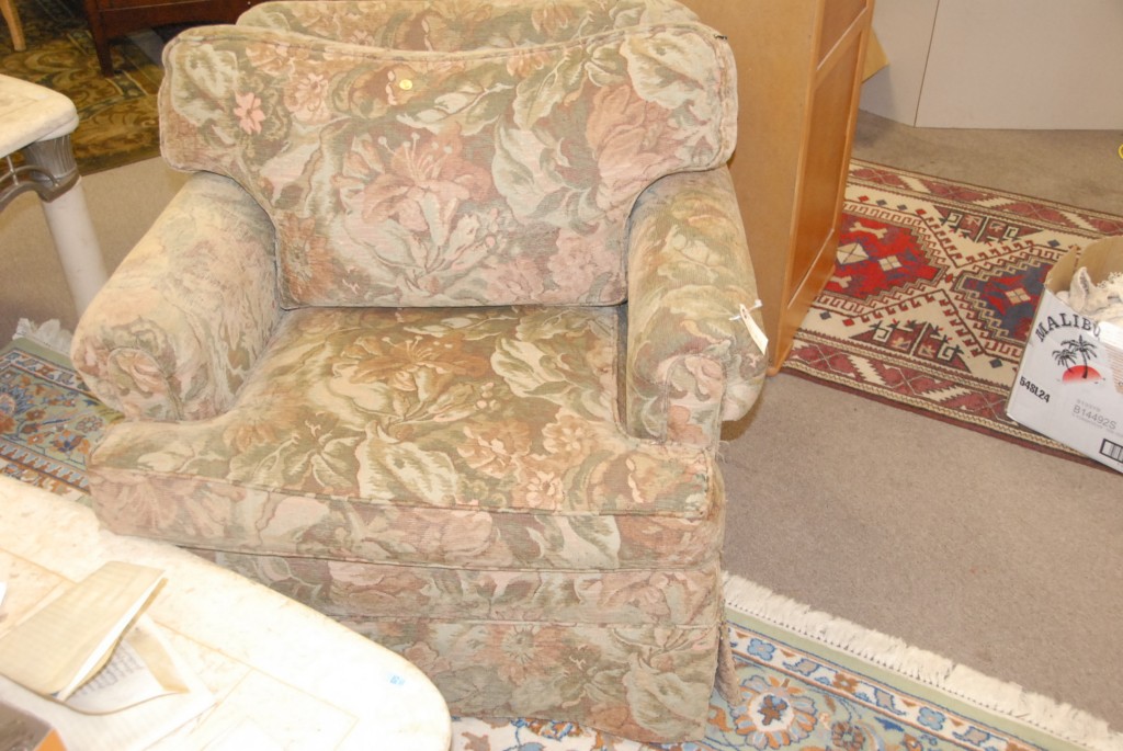Pair of Ethan Allen tapestry upholstered easy chairs.