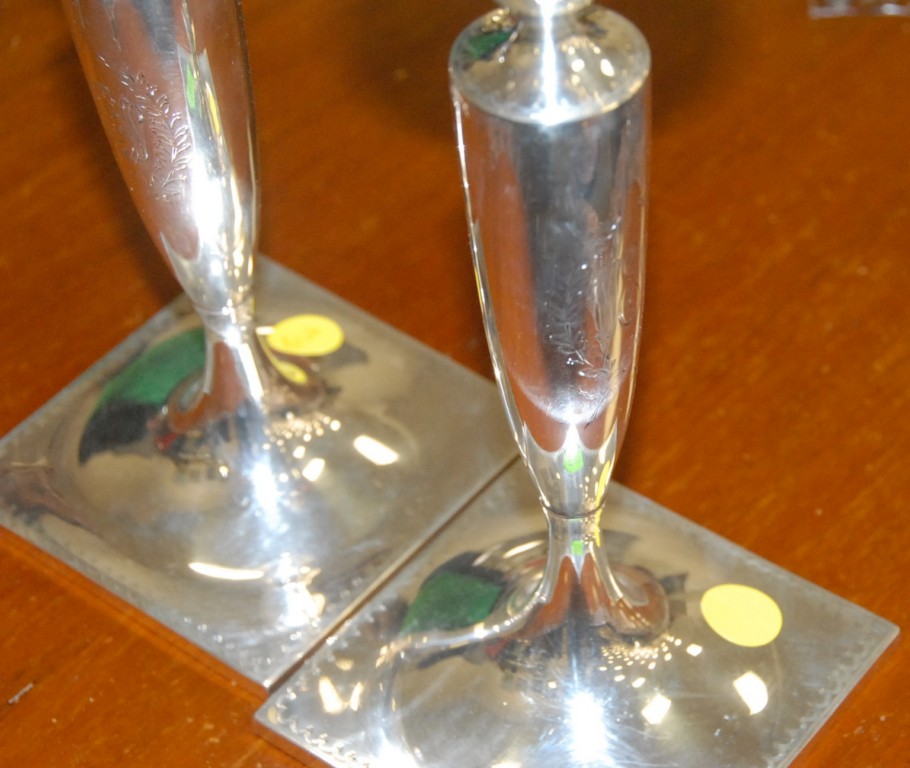 Pair of sterling candlesticks.