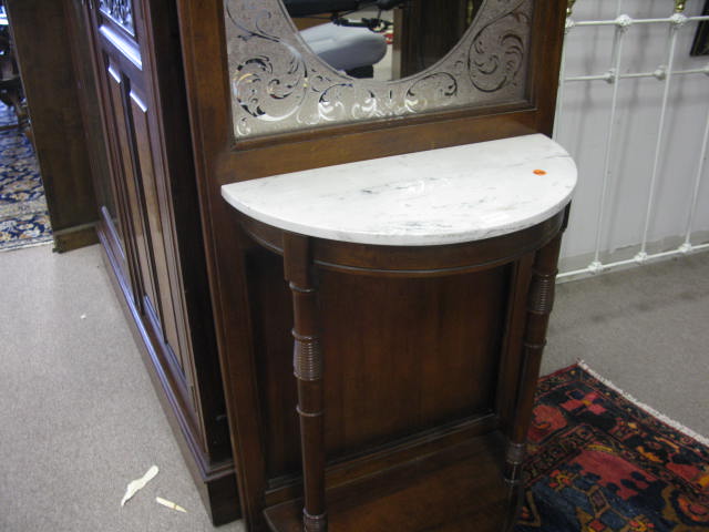 Reproduction hall rack with marble top.