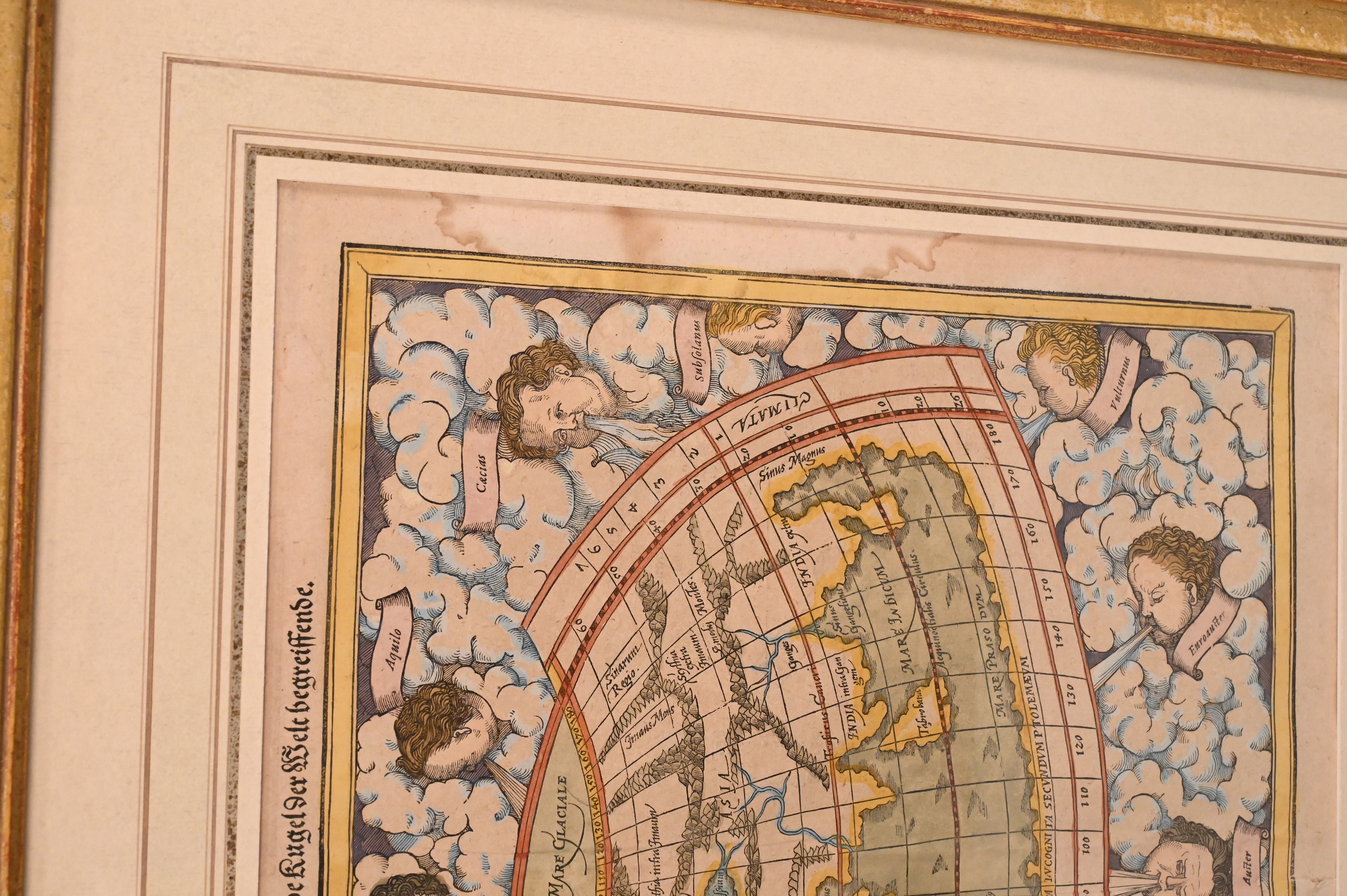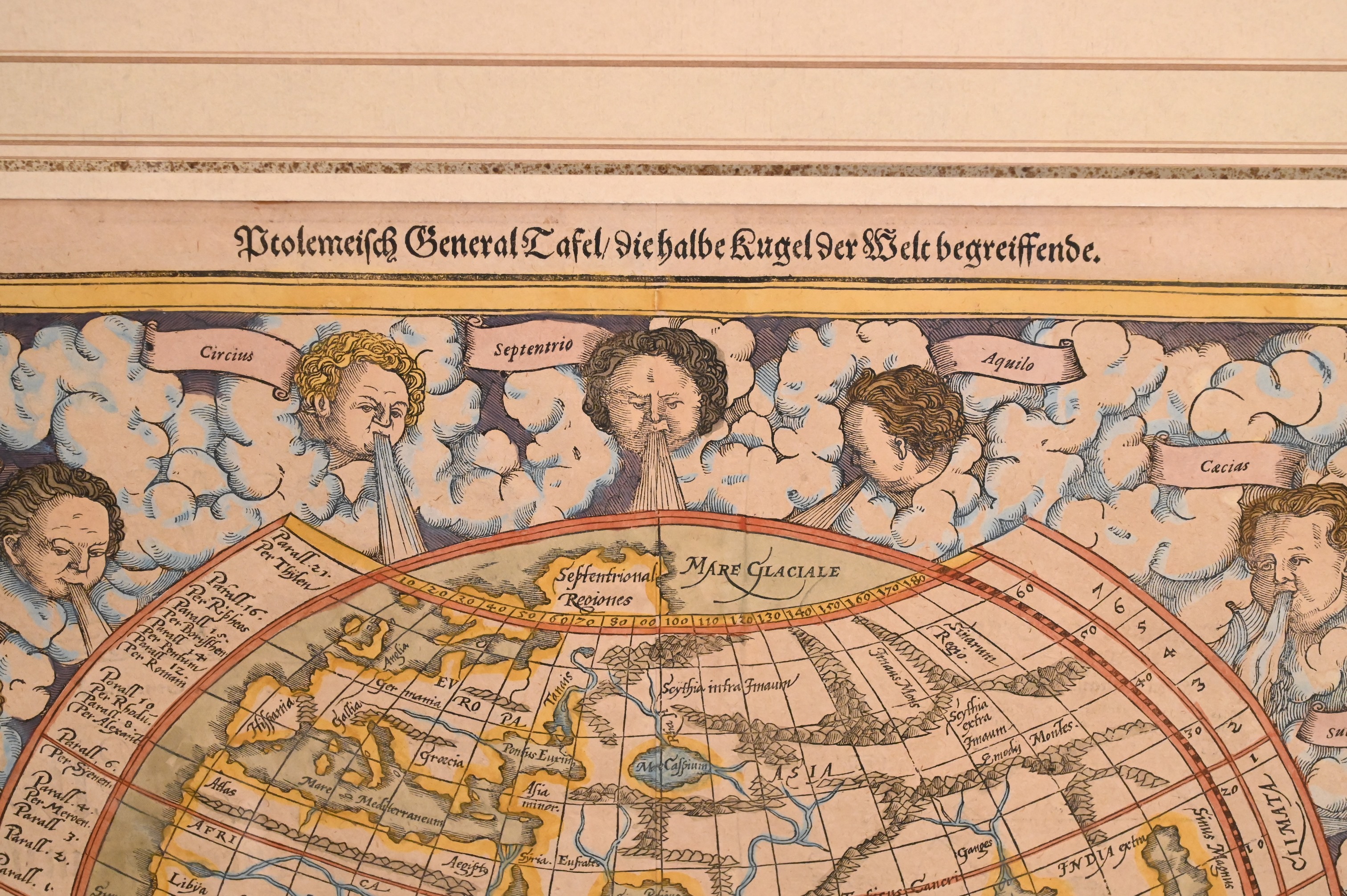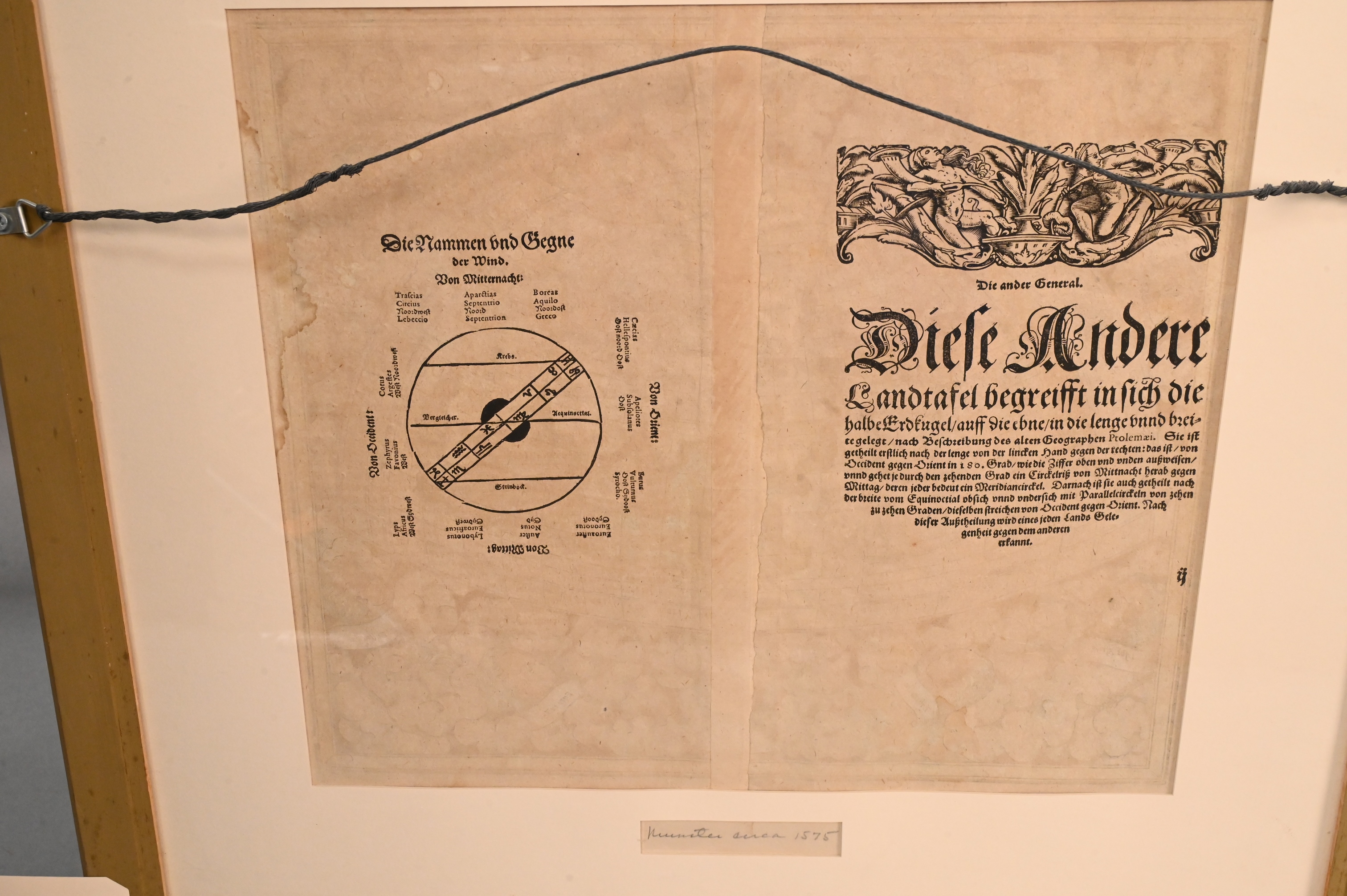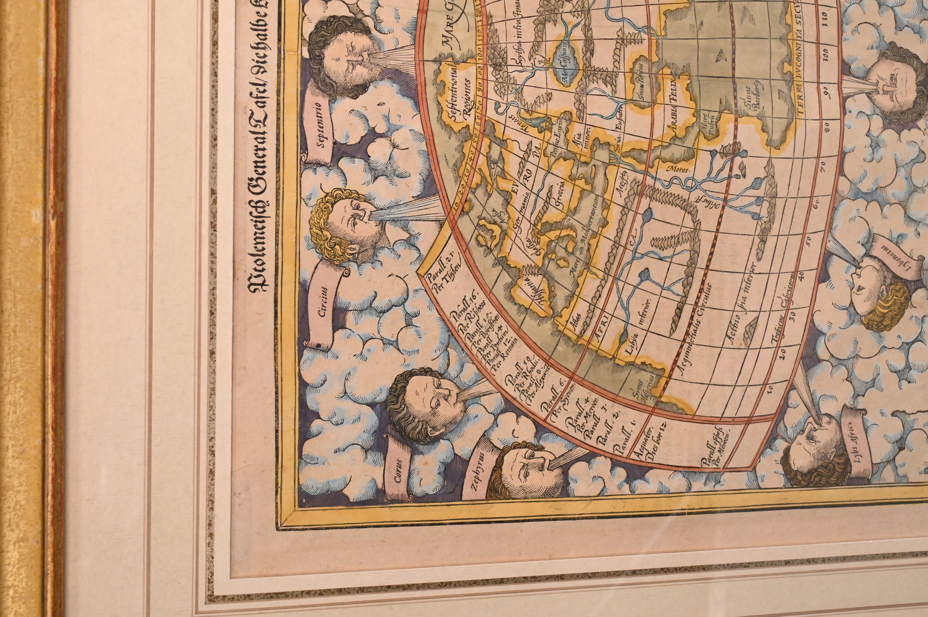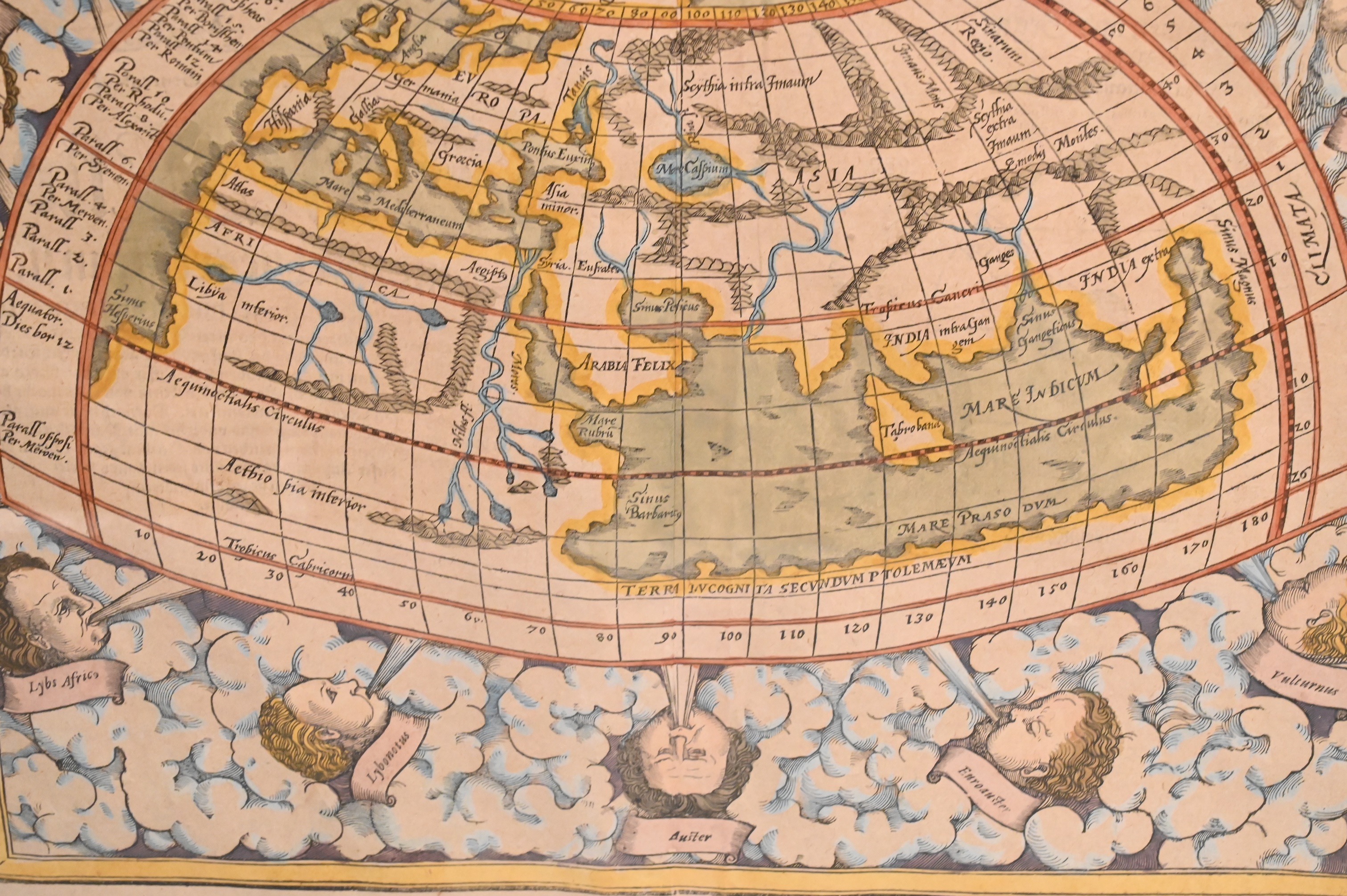 “Ptolemäisch General Tafel die halbKugel der Welt begreifende” circa 1575