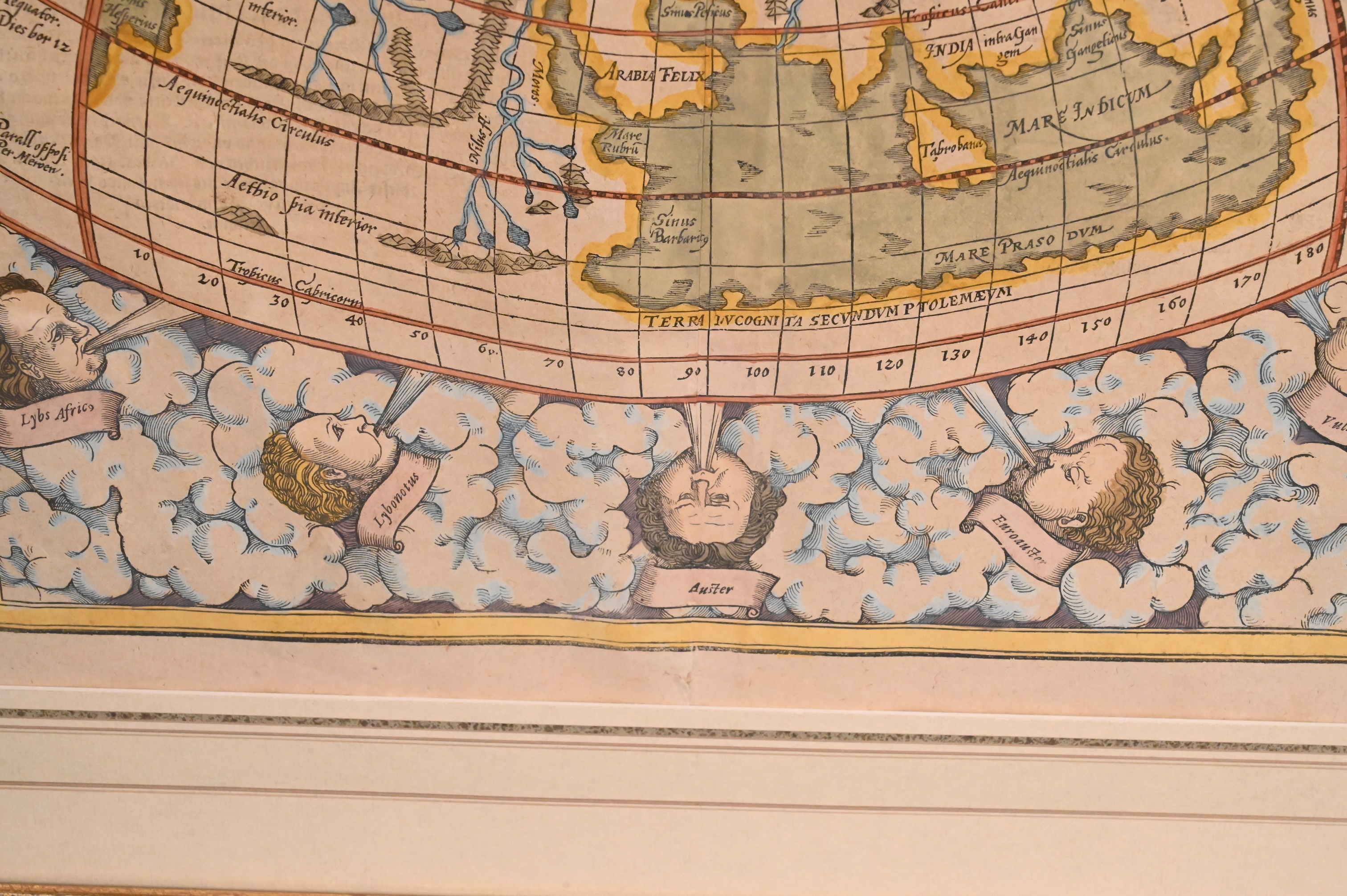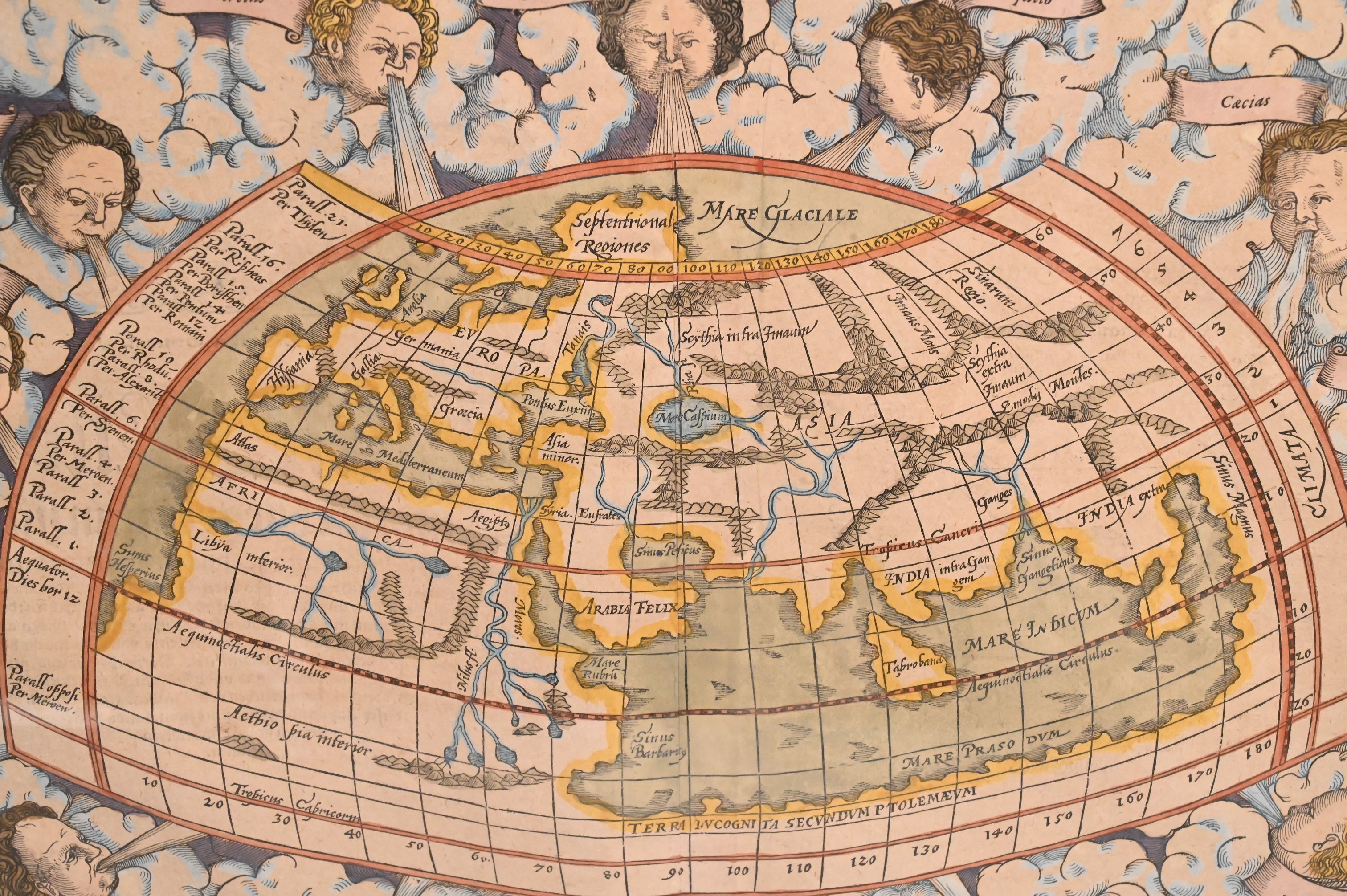 Map of the World according to Claudius Ptolemy, featuring the 12 wind gods as a border