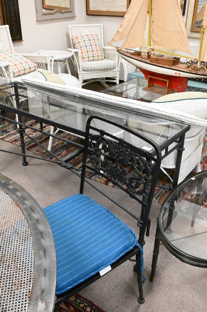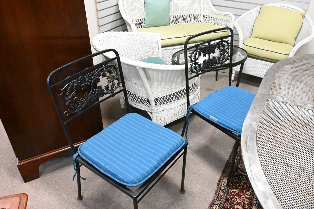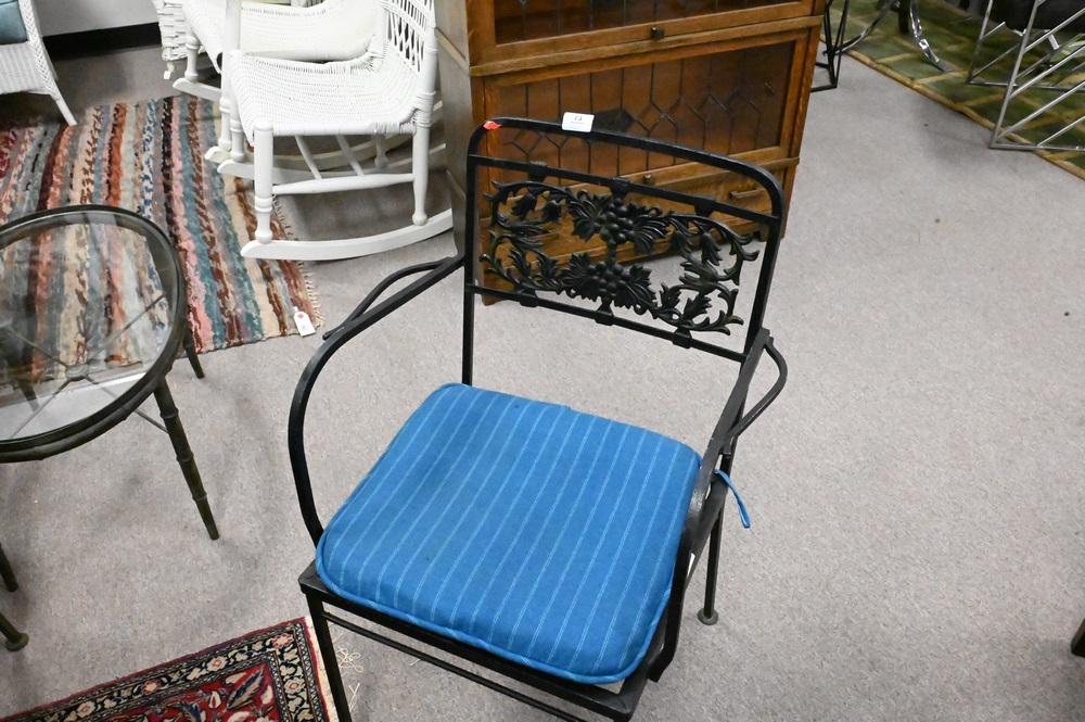 Set of Eight Iron Outdoor Chairs, to include two armchairs and two side chairs, height 32 1/2 inches.