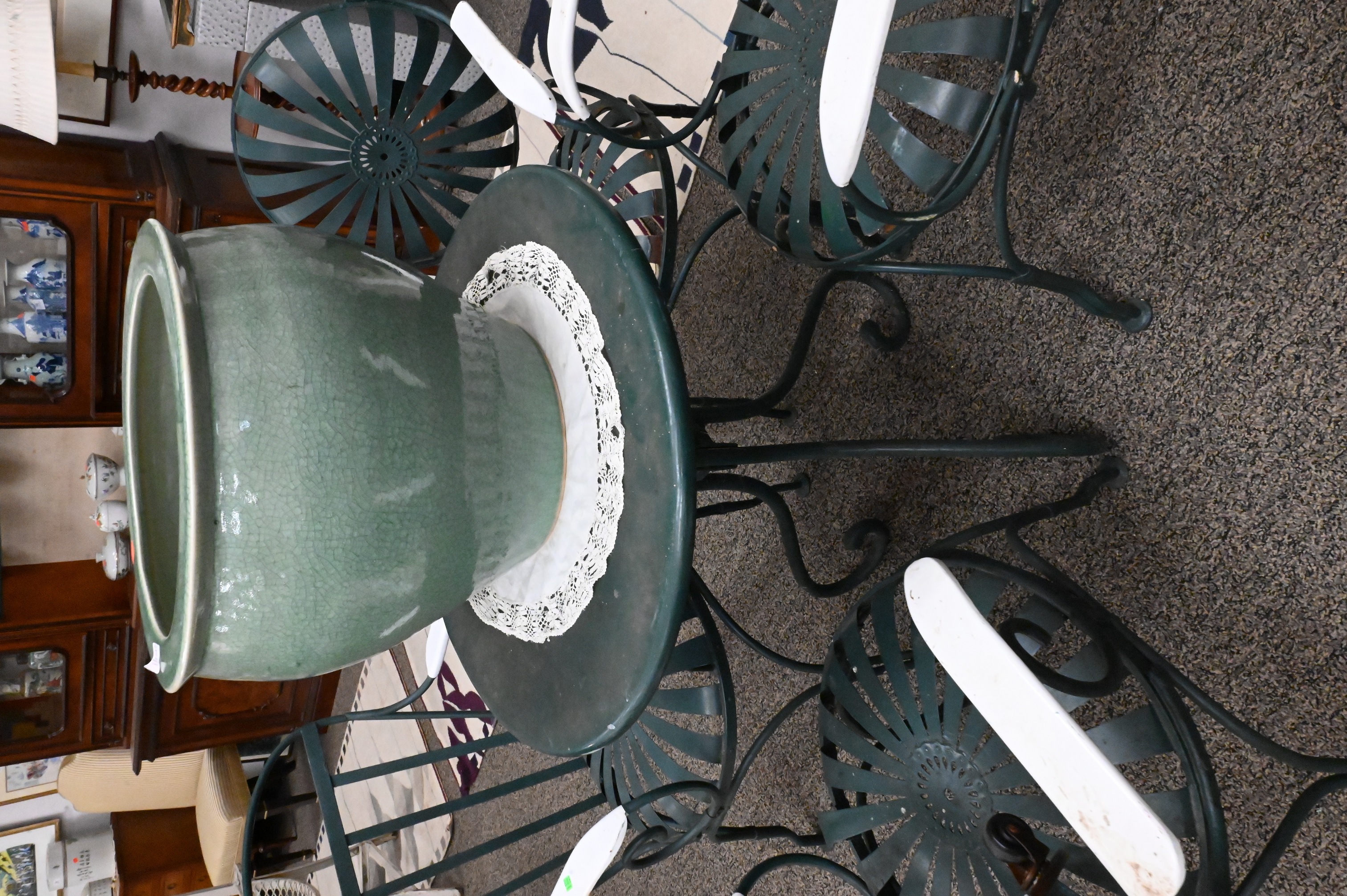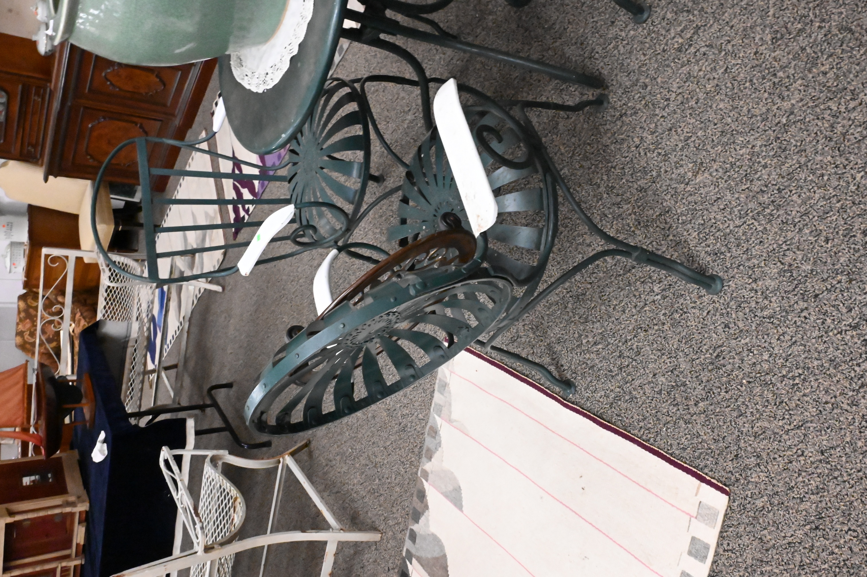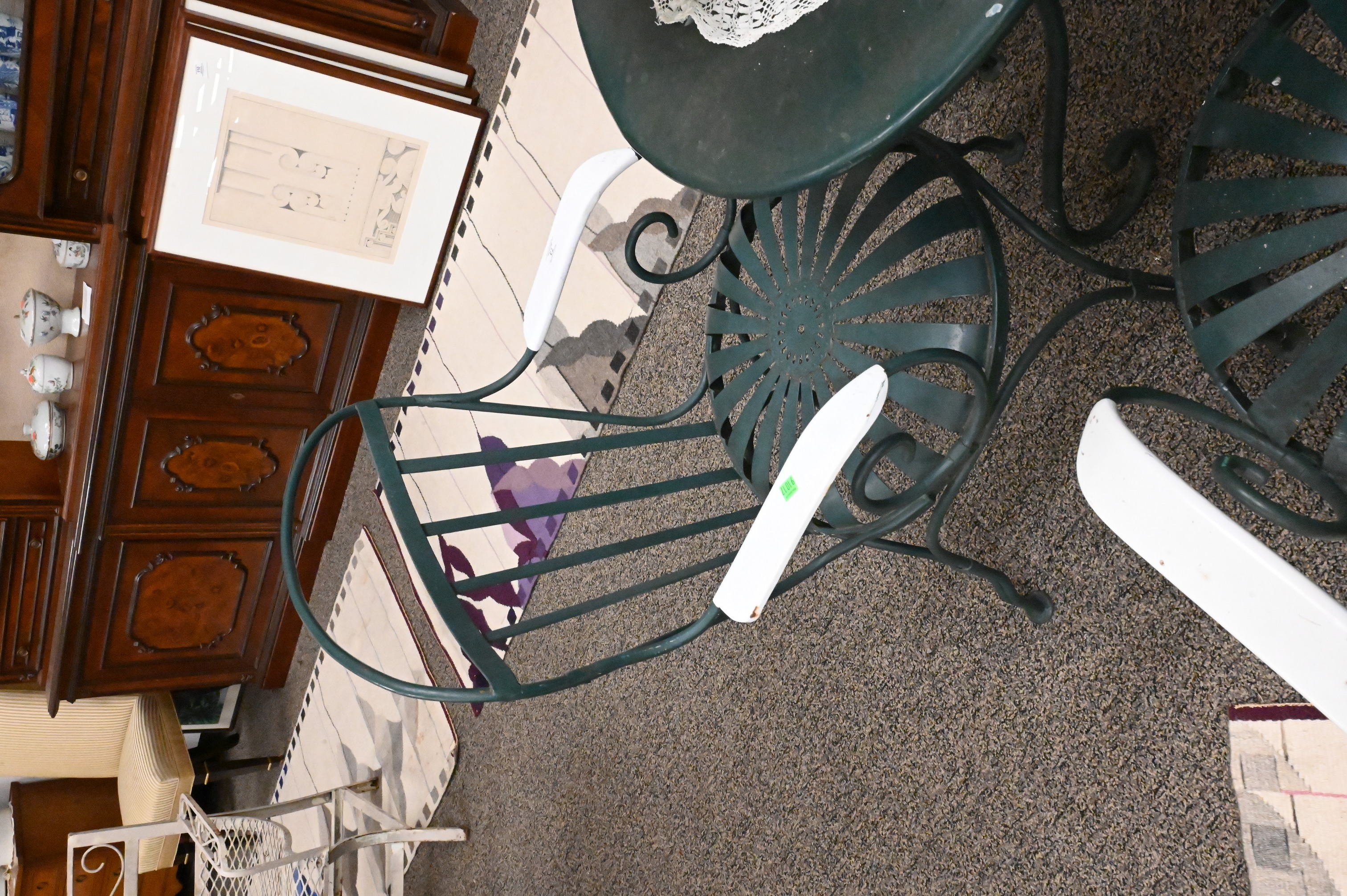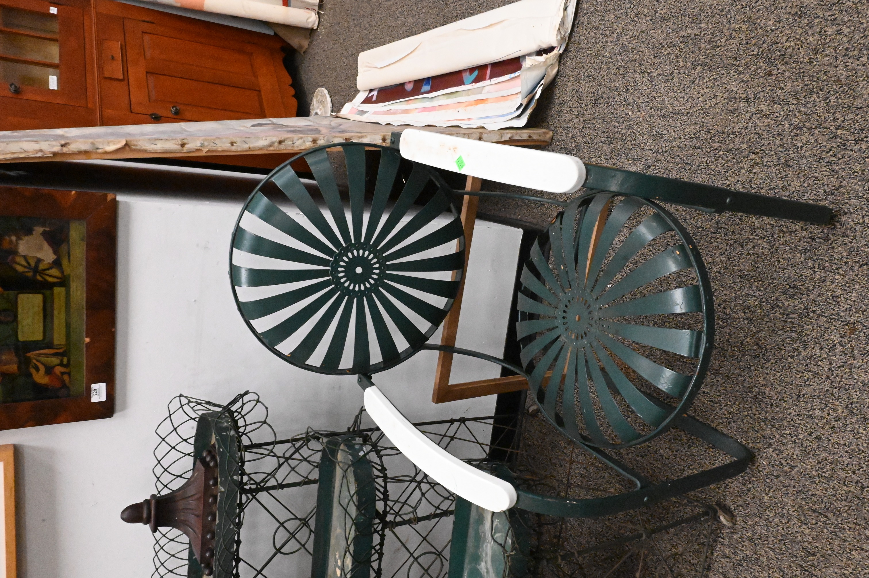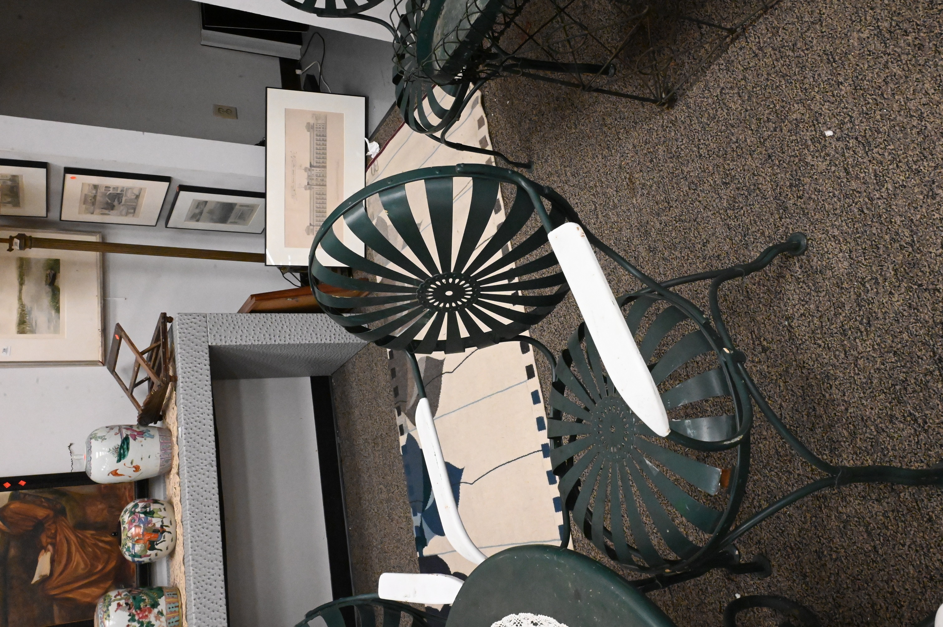 Lot 73: Six Coastal Francois Carre Sunburst Chairs along with Round Metal Table having Iron Base