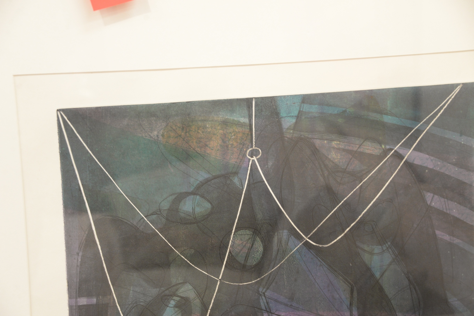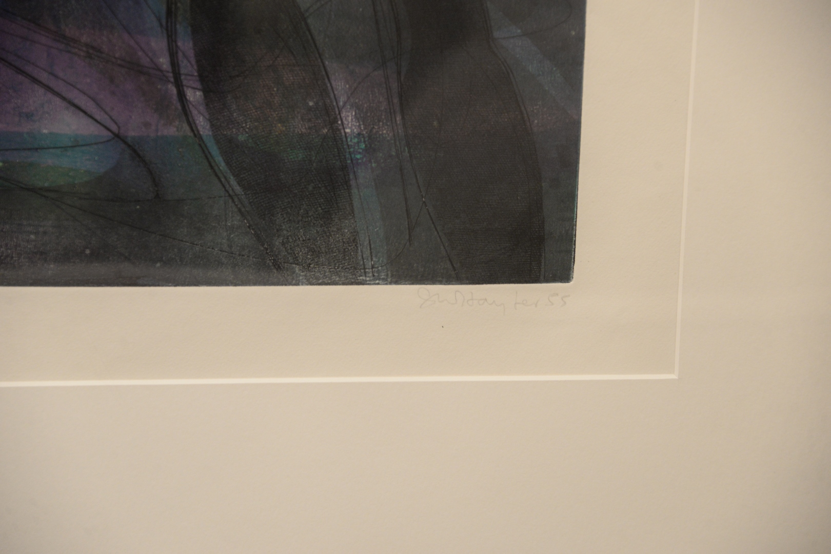 Stanley William Hayter (American, 1901 – 1988), untitled, engraving in colors on paper; signed, numbered ‘163/175’, and titled indistinctly along the lower edge, image 14″ x 18 1/2″.