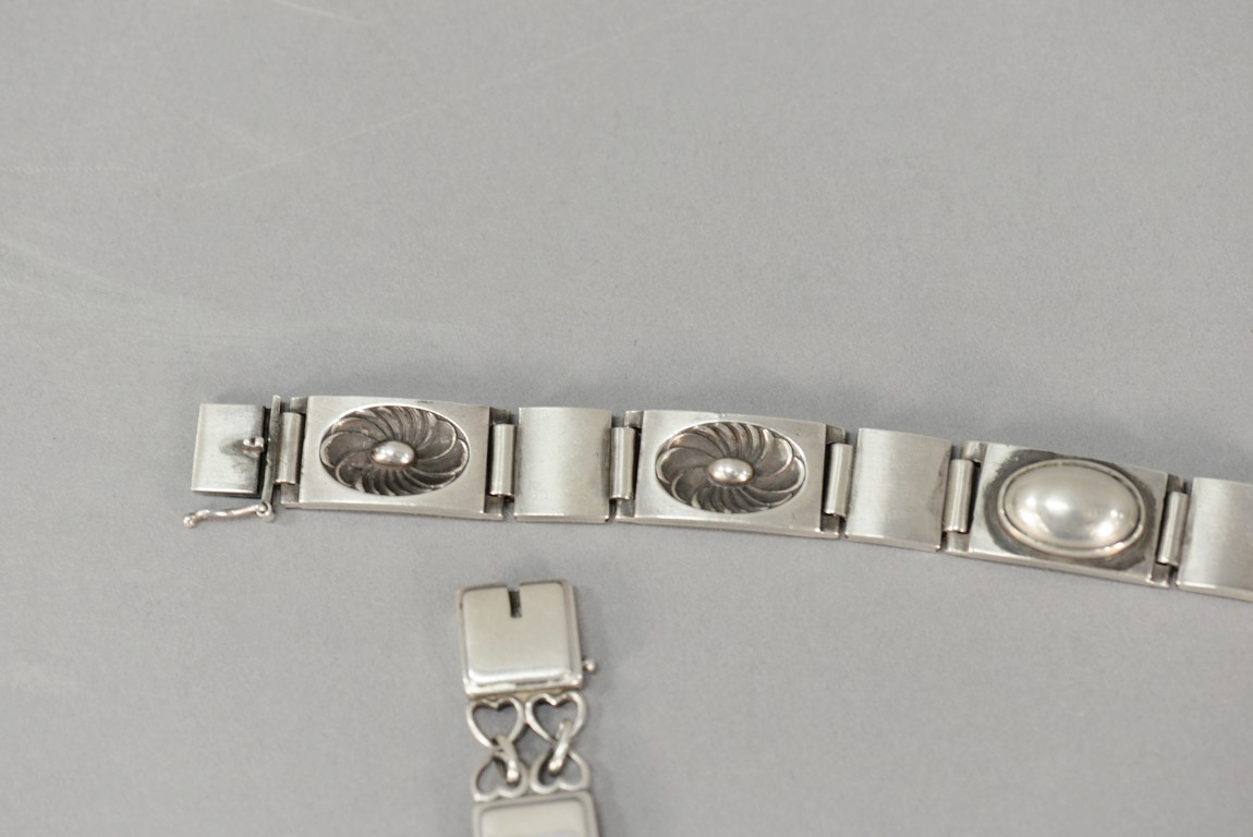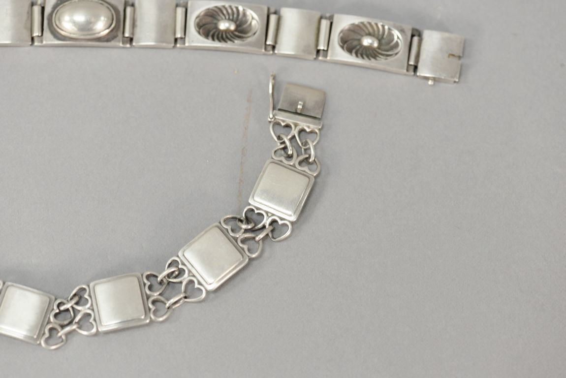 Two Georg Jensen sterling silver bracelets, both marked Georg Jensen Sterling.