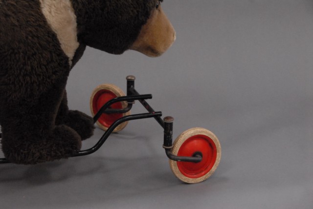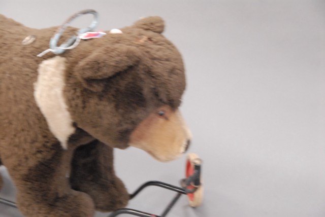 Vintage ride on bear toy.