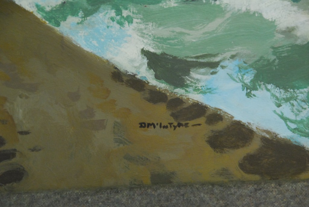 Donald McIntyre 1923-2009 ENTERING HARBOUR oil on board lower right D. McIntyre titled and signed on reverse Thackeray Gallery label on reverse – 12 x 16