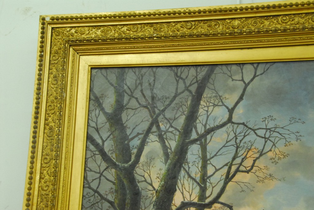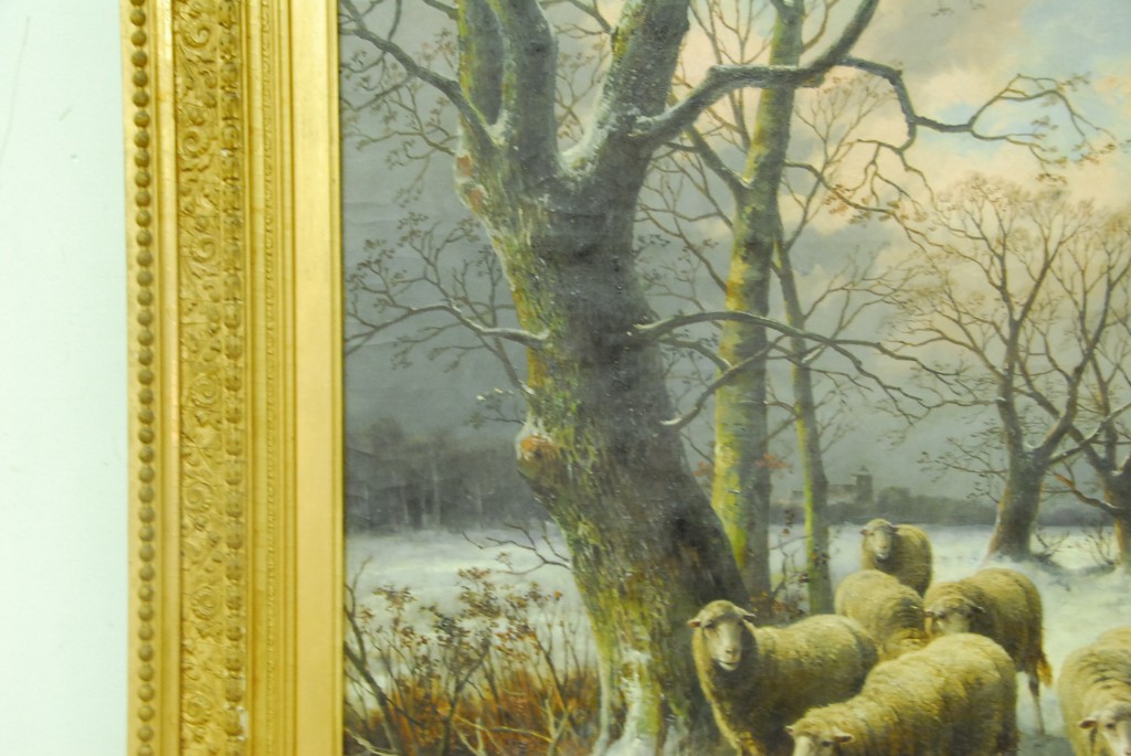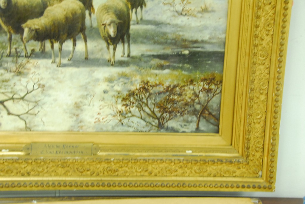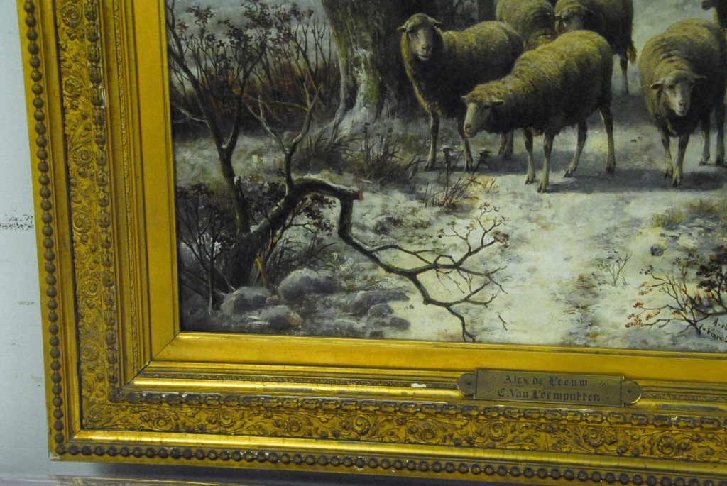 Alexis De Leeuw 1848-1883 HERDING SHEEP IN THE WINTER oil on canvas signed lower right A. De Leeuw and F. Van Leemputten – 40 x 30