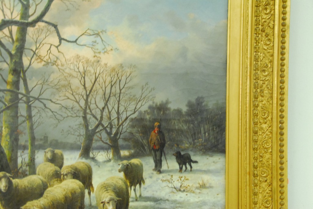 Lot 739: Alexis De Leeuw 1848-1883 HERDING SHEEP IN THE WINTER oil on canvas signed lower right A. De Leeuw and F. Van Leemputten – 40 x 30