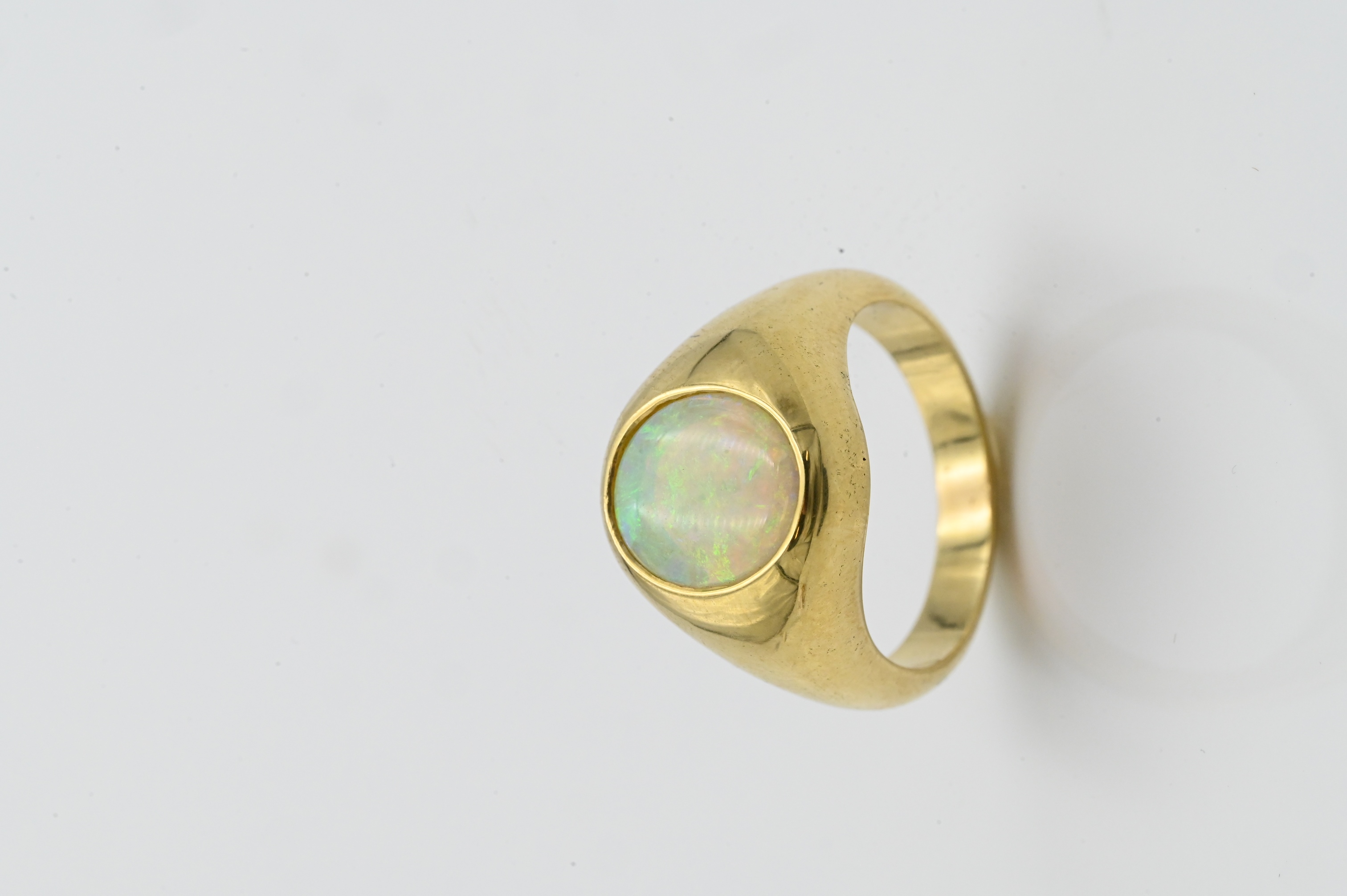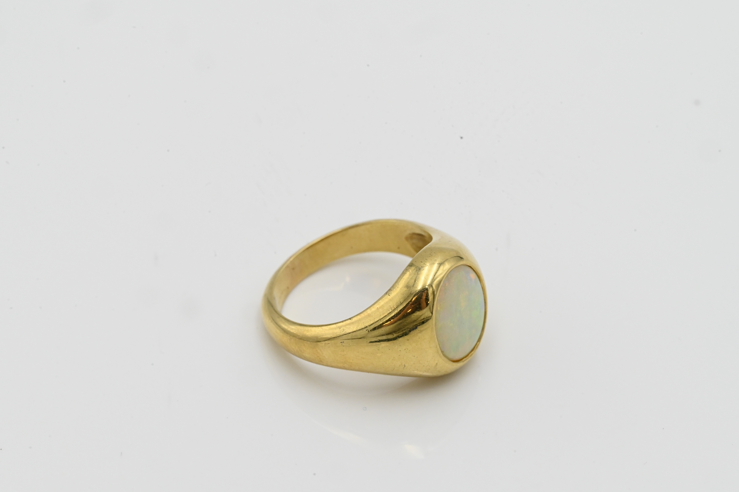 Lot 74: 18K Yellow Gold Men’s Ring Set with Oval Opal