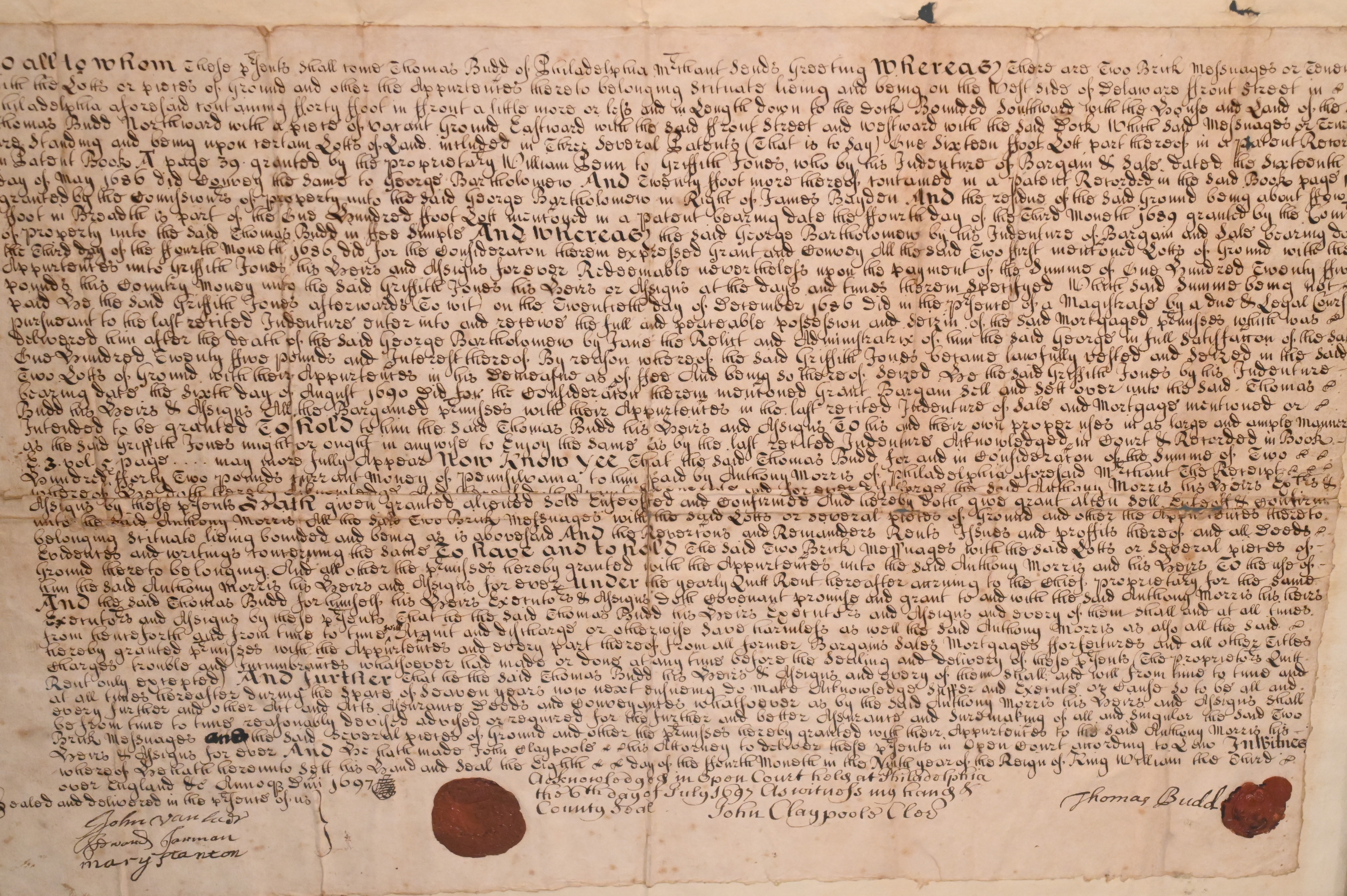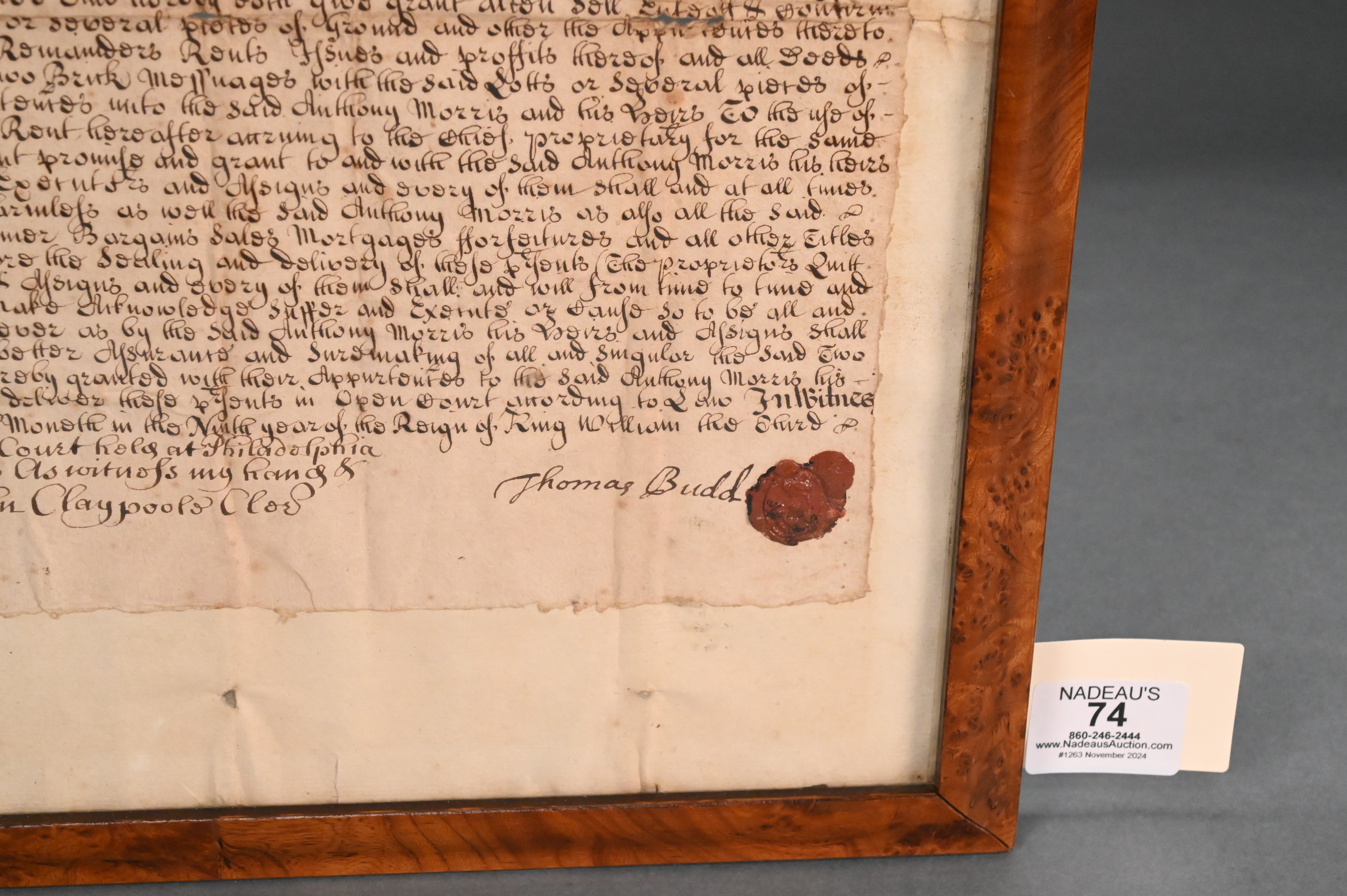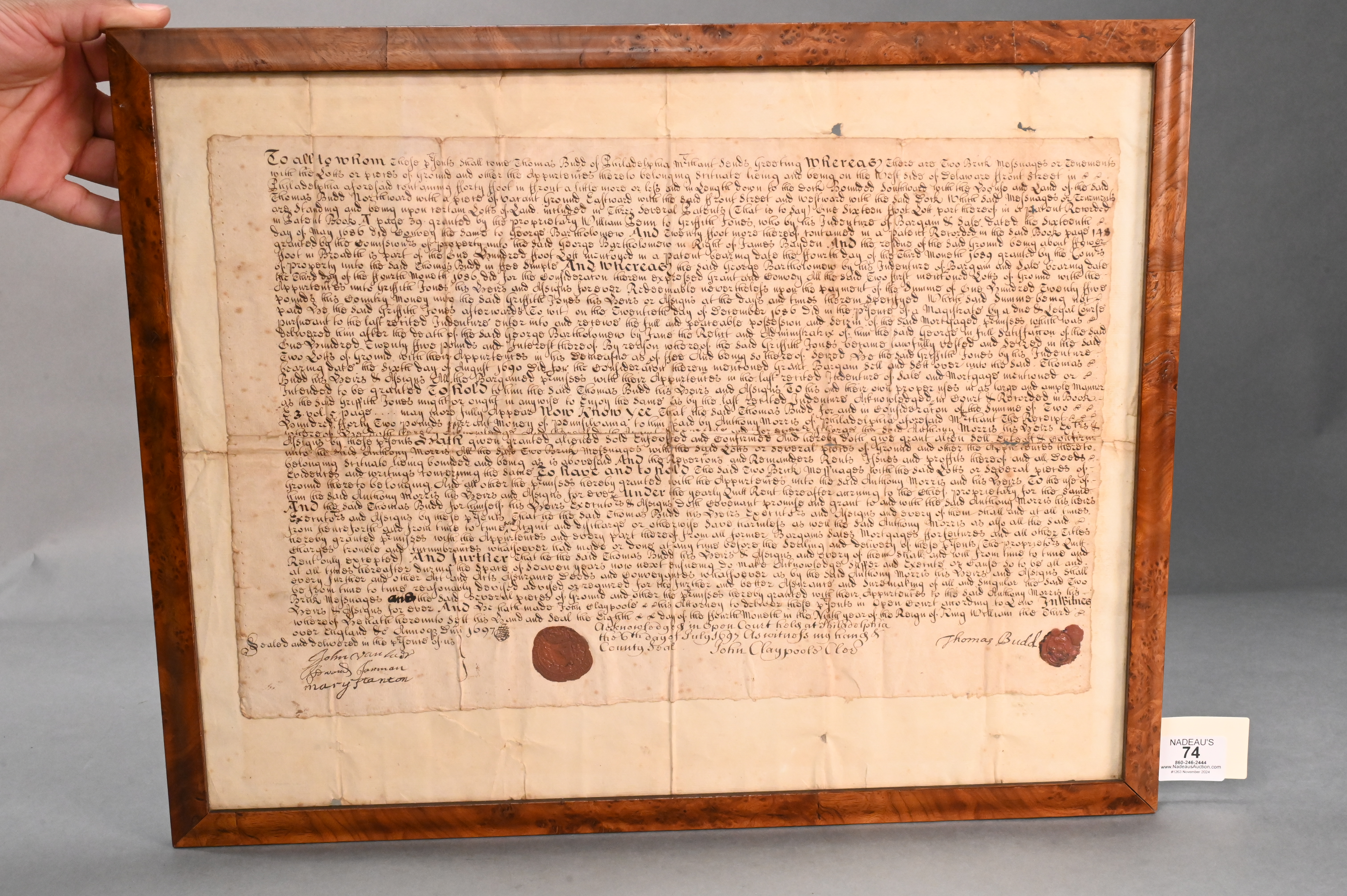 Lot 74: Circa 1697 Philadelphia Land Deed