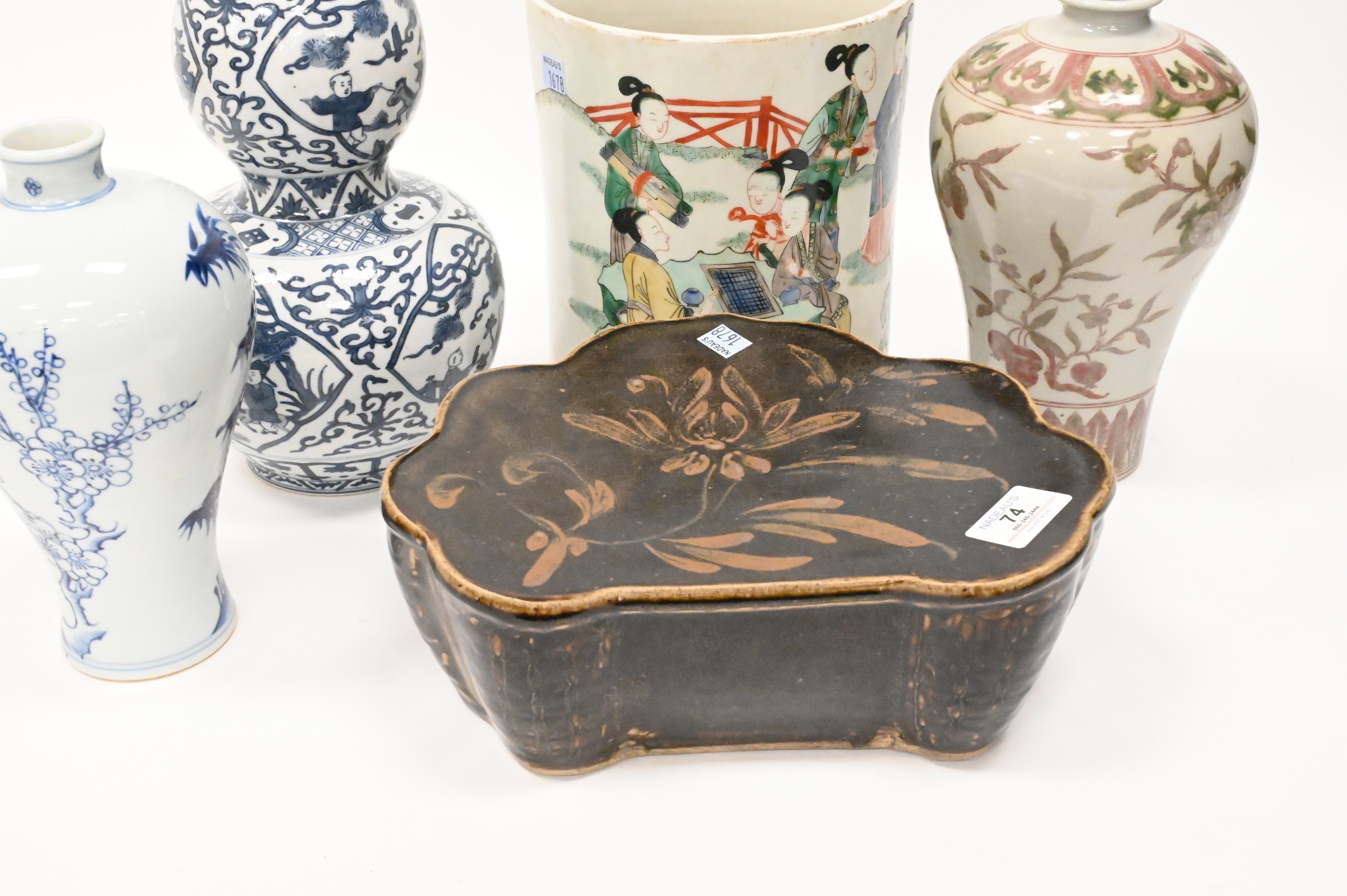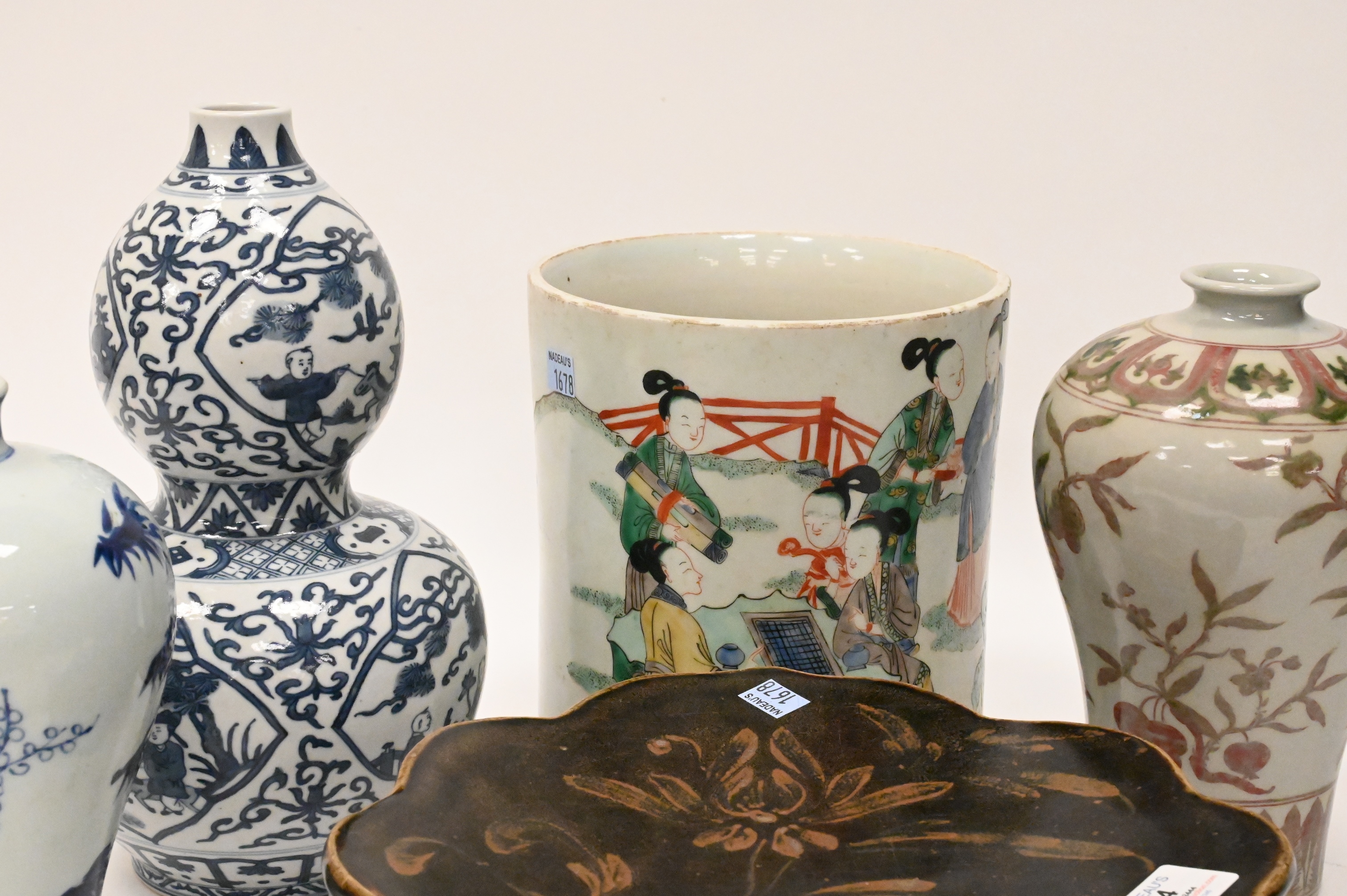 Five Piece Group of Chinese Porcelain, tallest height 12 1/2 inches.