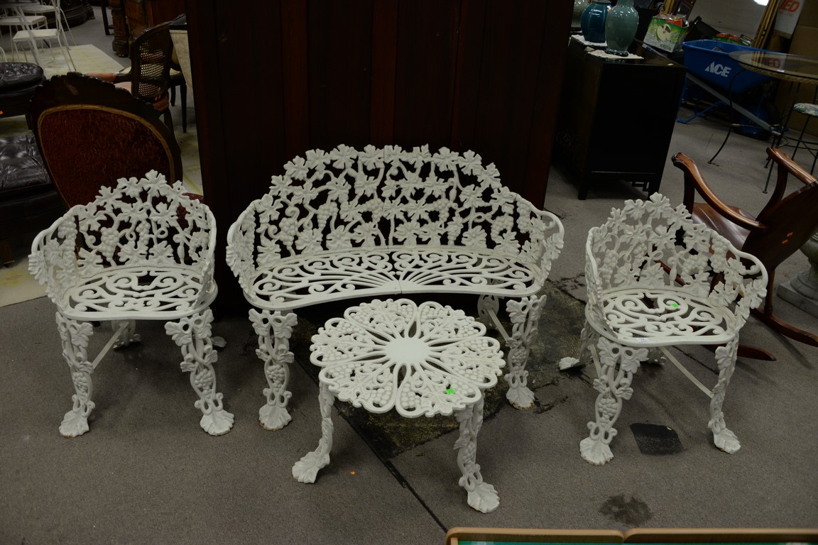 Four piece metal outdoor set. bench lg. 40 1/2in.
