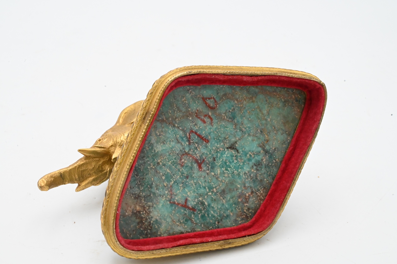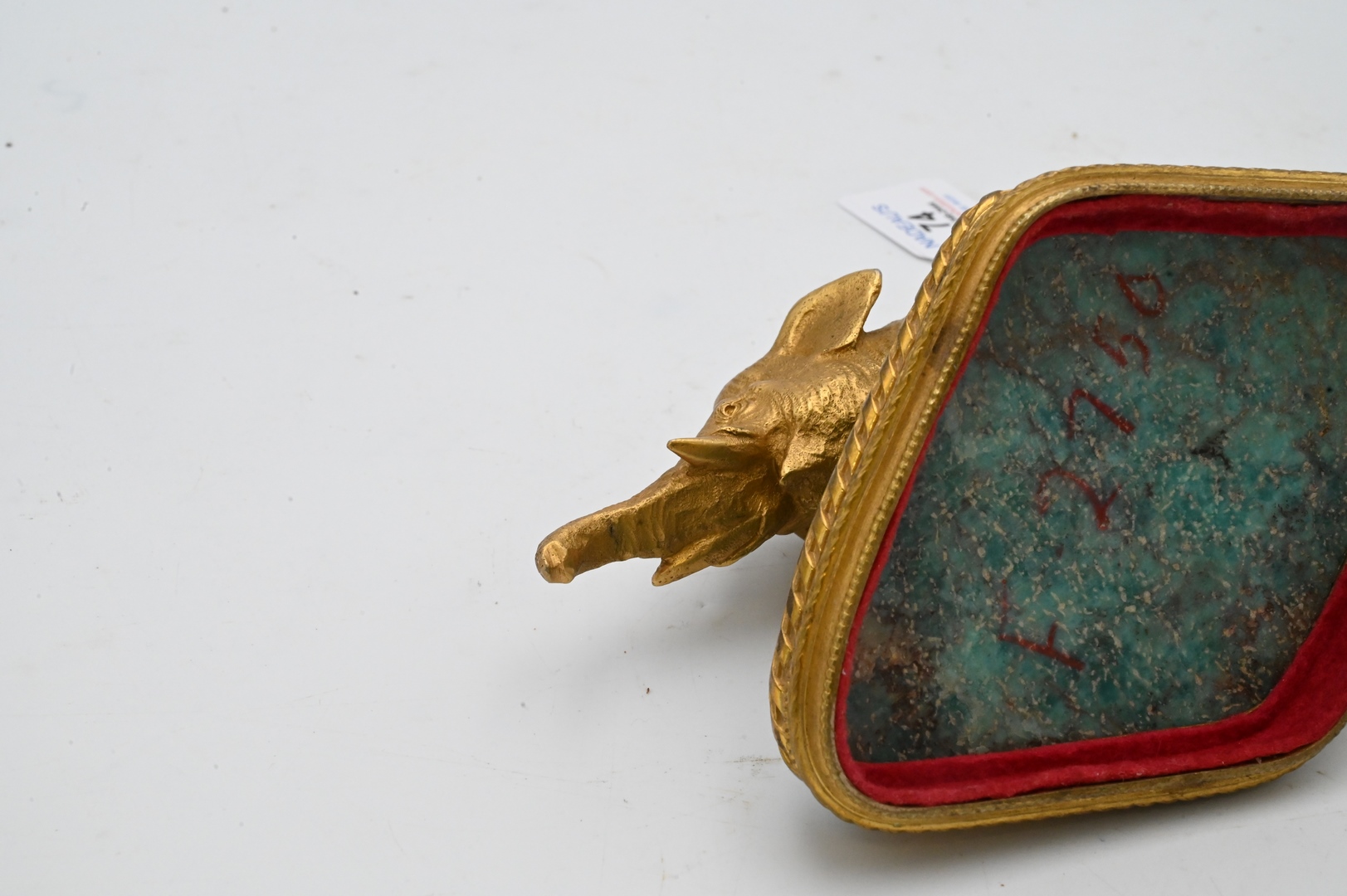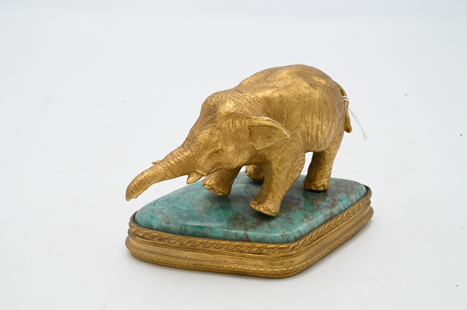 Gilt Bronze Elephant, mounted on a semi precious blue onyx and gilt bronze base, France, late 19th century, height 4 inches, width 6 inches, depth 4 inches.