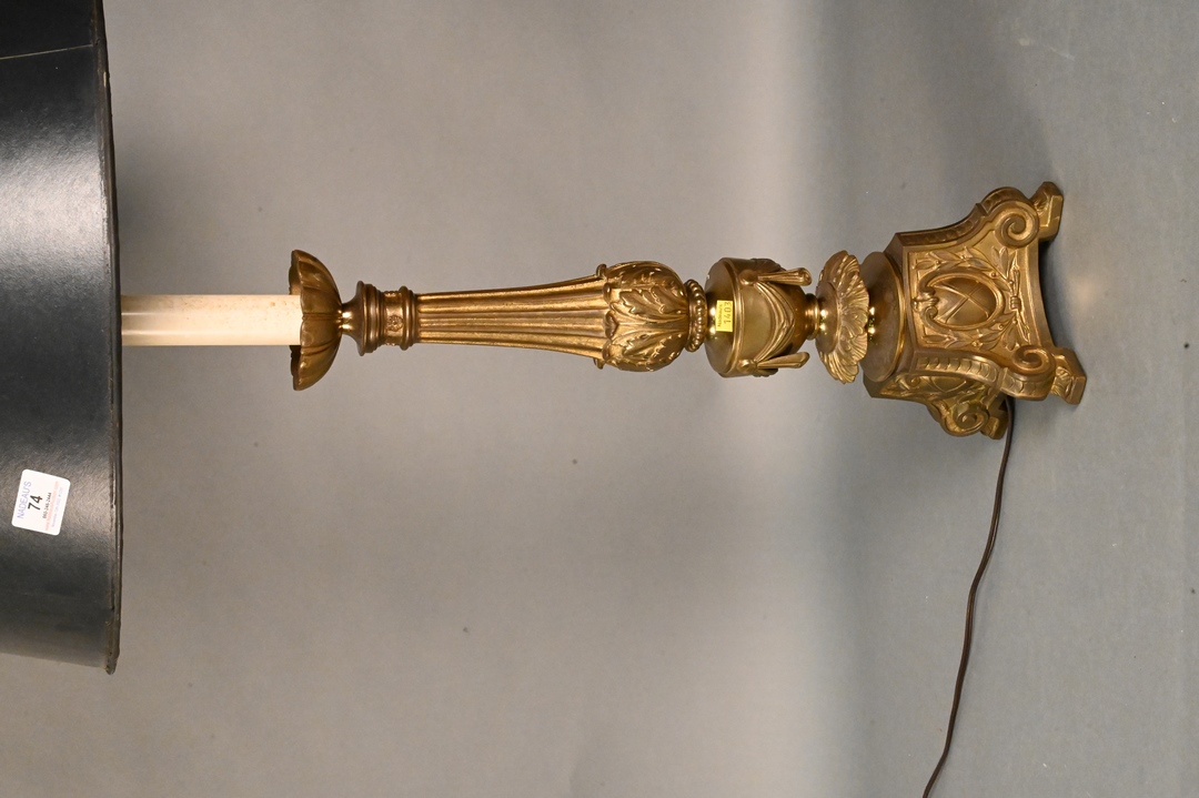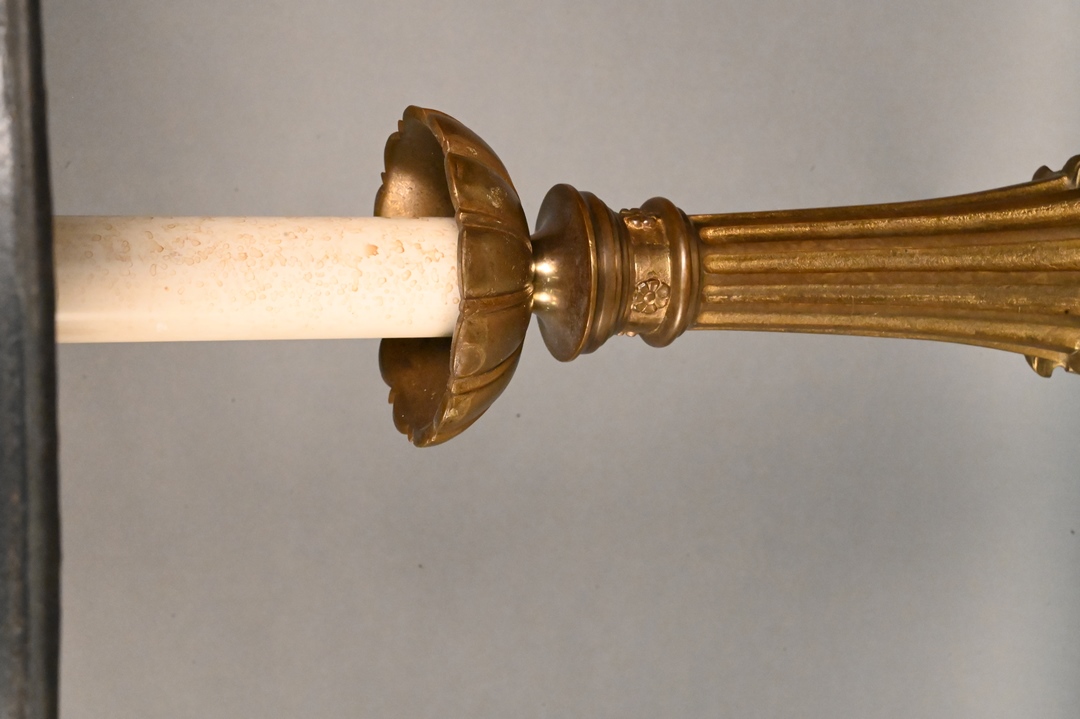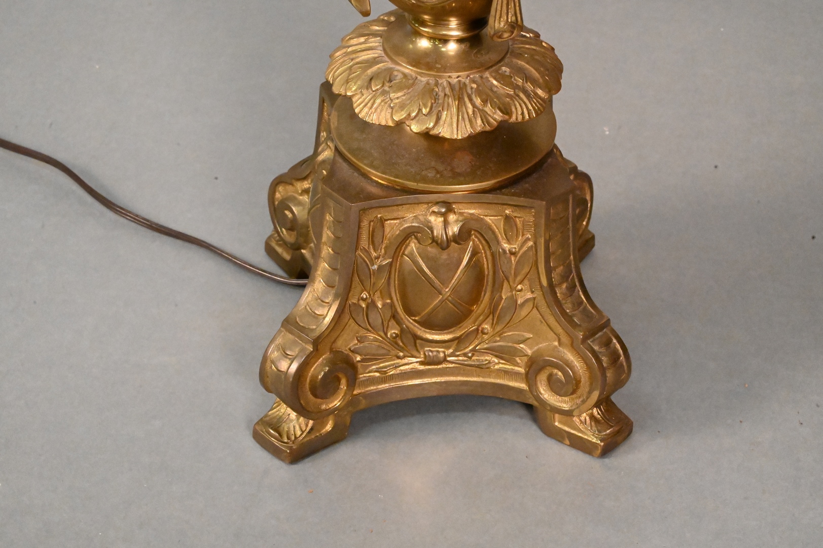 Large Bronze Candlestick Lamp, on square base, overall height 40 inches, candlestick height 20 inches.