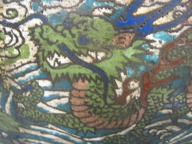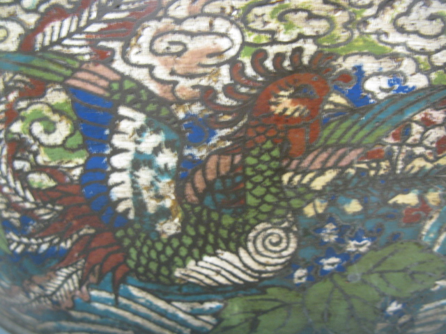 Large cloisonn bronze dragon pot.