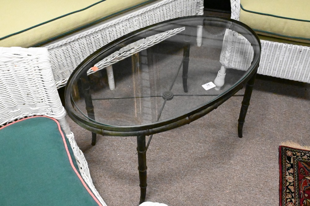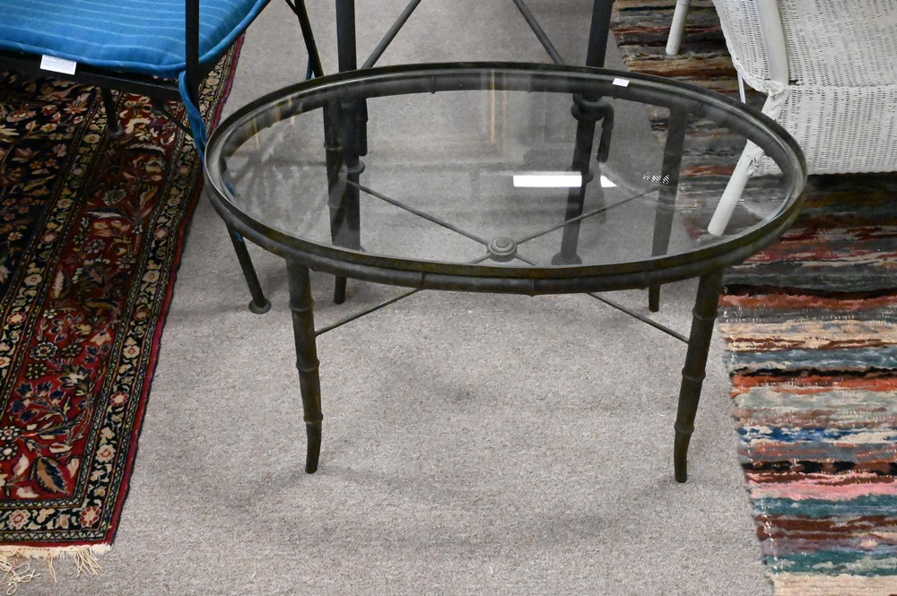 Pair of Oval Glass Top Tables, height 16 1/2 inches, top 18″ x 29″.