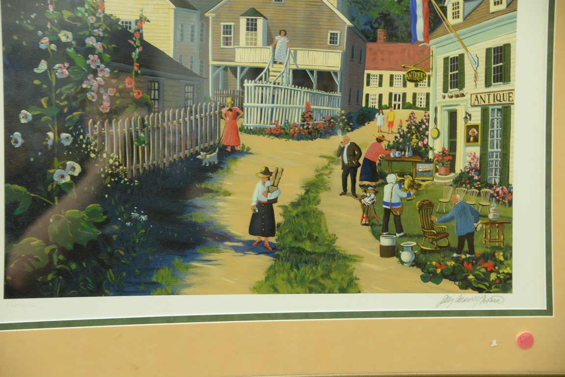 Sally Caldwell Fisher b. 1951 two prints including Rusticators at the Seaside ss 13 1/2 x 34 and Antiques in Town ss 24 x 24.