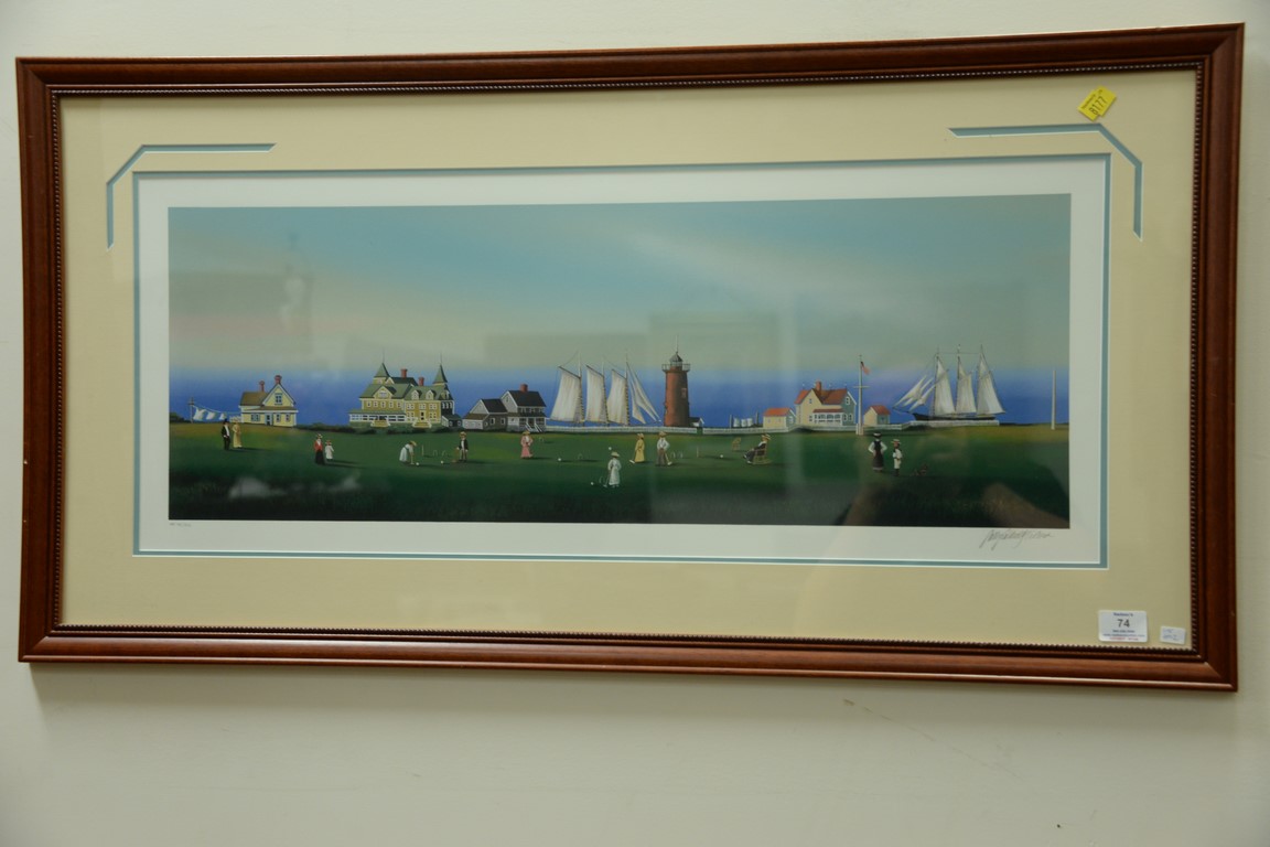 Lot 74: Sally Caldwell Fisher b. 1951 two prints including Rusticators at the Seaside ss 13 1/2 x 34 and Antiques in Town ss 24 x …