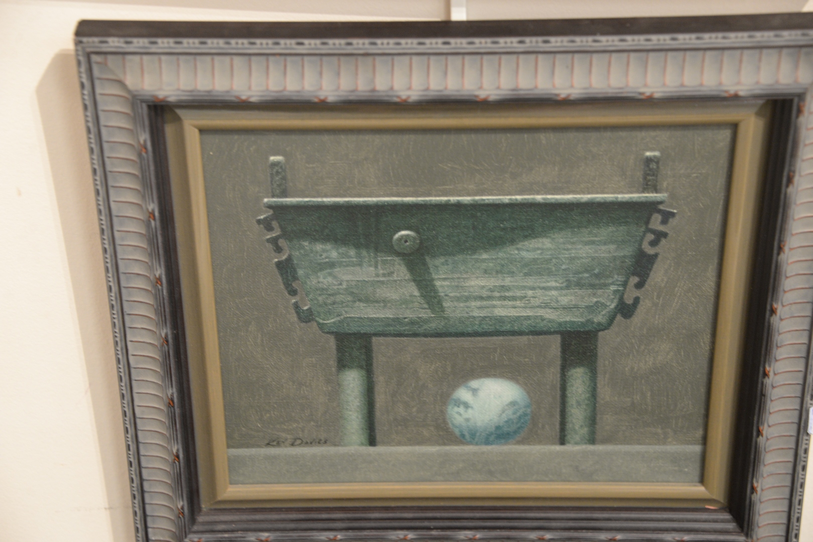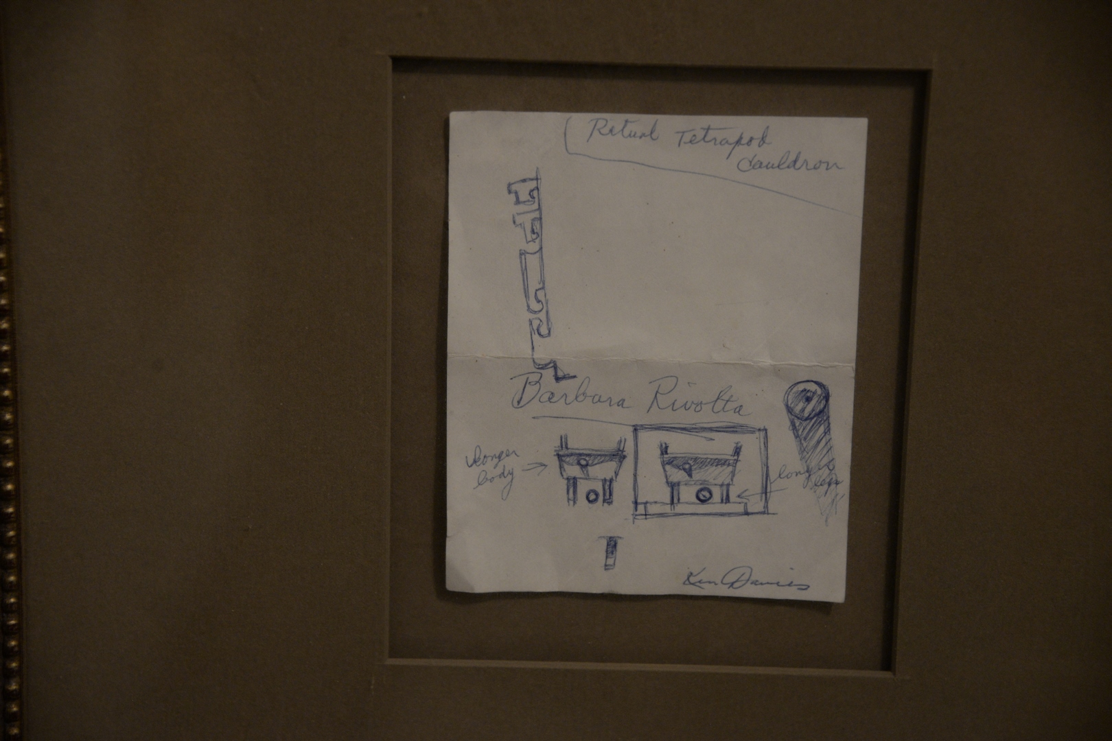 Lot 74: Two Piece Kenneth Davies (American, b. 1925) Lot, to include untitled (cauldron), oil on canvas, laid on canvas, signed lower left Ken Davies; along with a pen and ink preliminary sketch, 7 3/4″ x 9″ (canvas), 4 3/4″ x 4″ (sheet size). Provenance: The Estate of Alan Gans, Mulberry Point, Guilford.