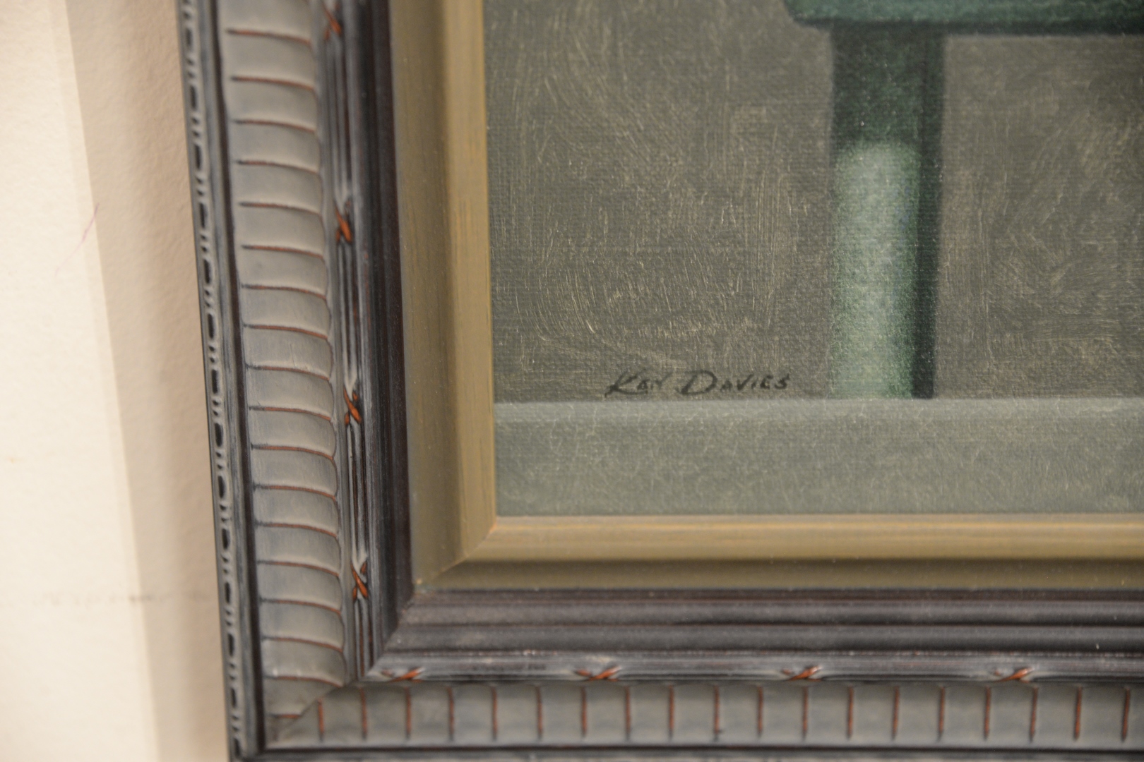 Two Piece Kenneth Davies (American, b. 1925) Lot, to include untitled (cauldron), oil on canvas, laid on canvas, signed lower left Ken Davies; along with a pen and ink preliminary sketch, 7 3/4″ x 9″ (canvas), 4 3/4″ x 4″ (sheet size). Provenance: The Estate of Alan Gans, Mulberry Point, Guilford.