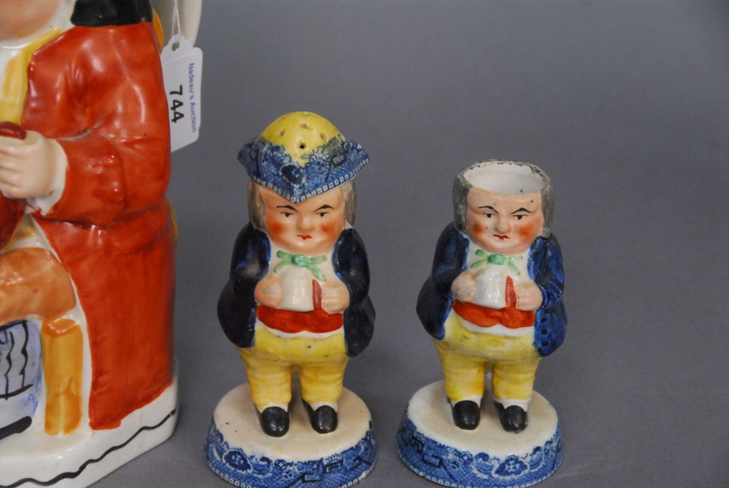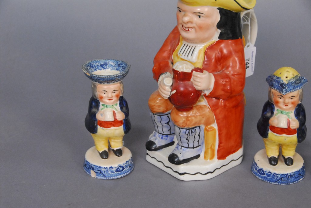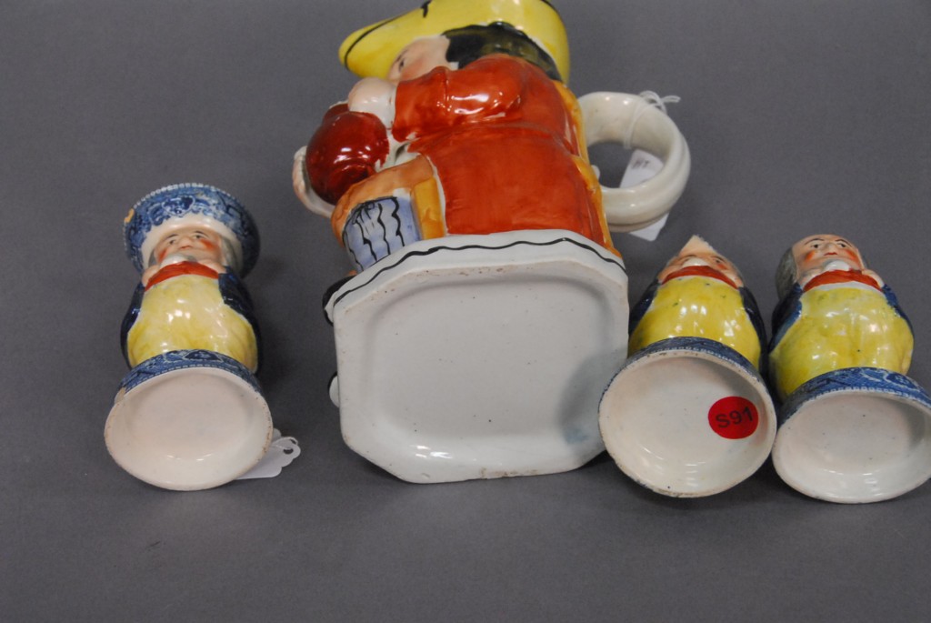 Four piece Staffordshire lot of Toby figures one without top. – ht. 9in. & 4 1/2in.