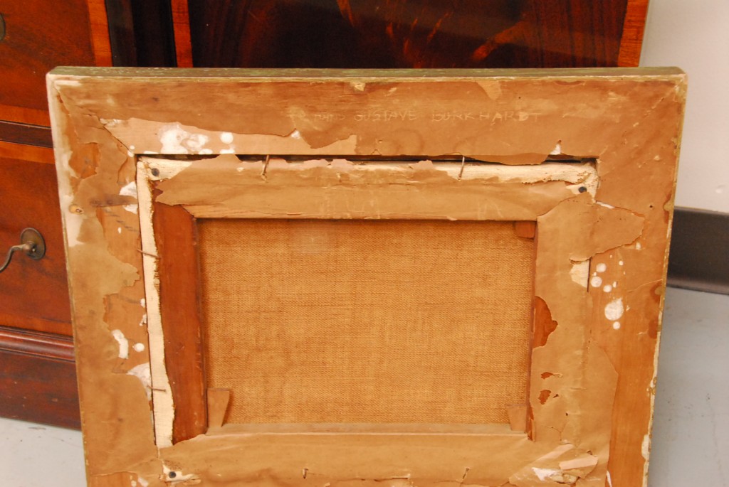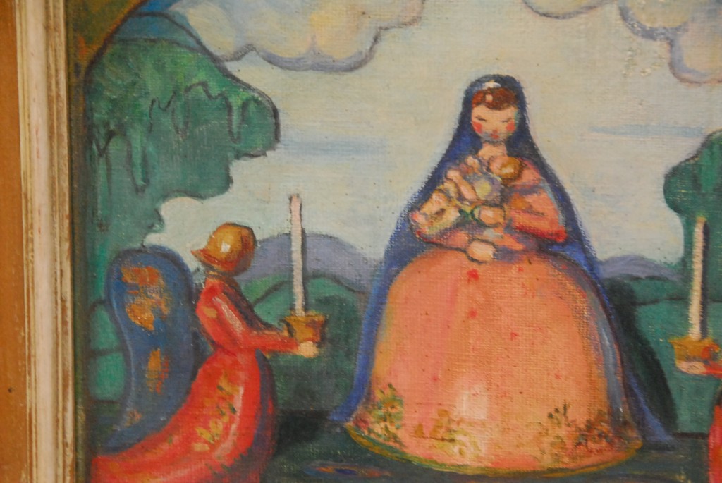 Attributed to Hans Gustav Burkhardt 1904-1994 TWO ANGELS AND A MOTHER FIGURE oil on canvas signed lower right H. G. Burkhardt – 11 x 14