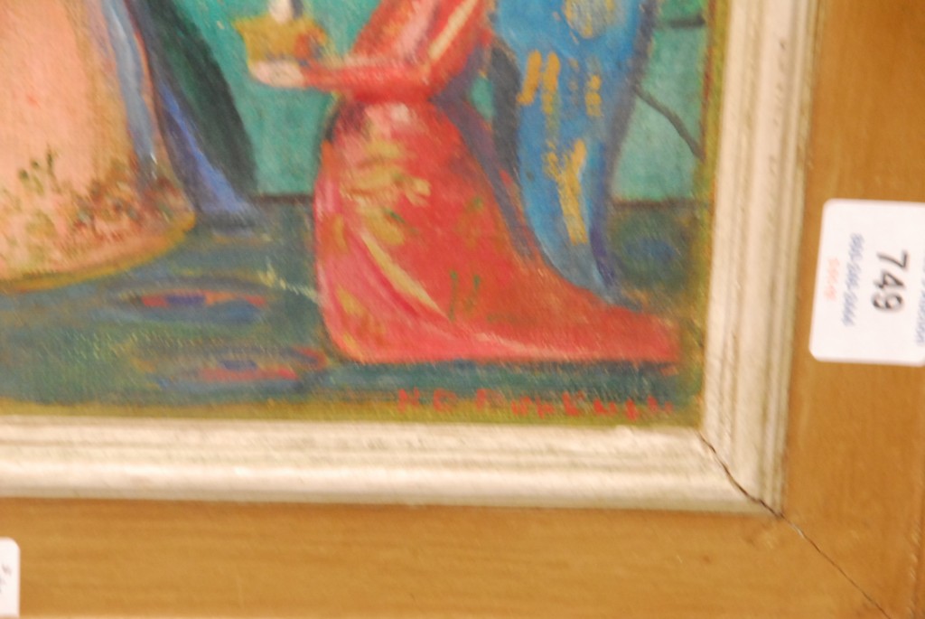 Lot 749: Attributed to Hans Gustav Burkhardt 1904-1994 TWO ANGELS AND A MOTHER FIGURE oil on canvas signed lower right H. G. Burkhardt – 1…