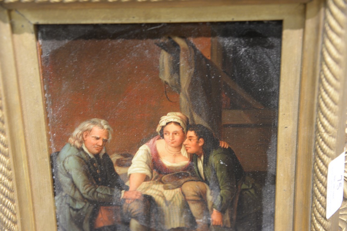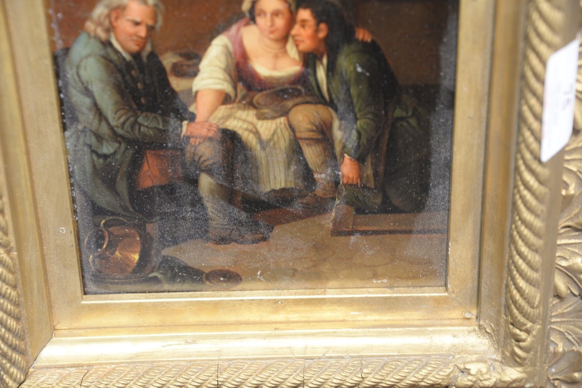 19th Century oil on tin, Dutch interior scene with three people, 8 x 6. Provenance: Estate of Arthur C. Pinto, MD