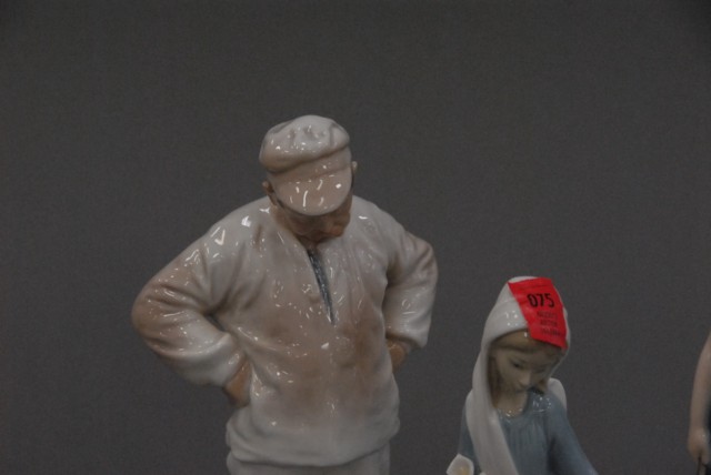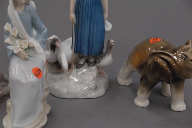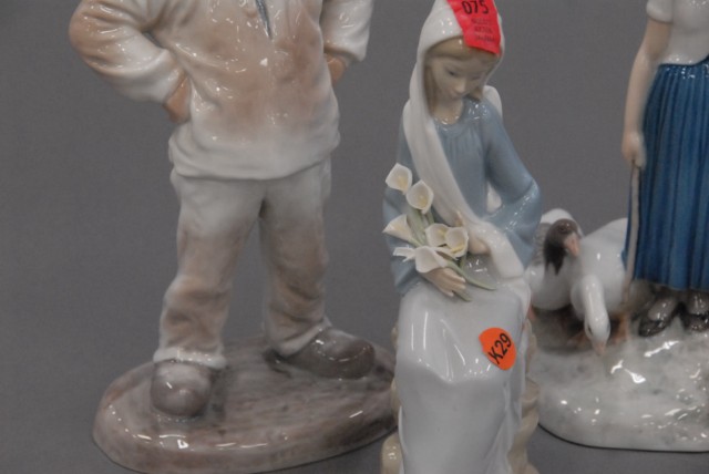 4 porcelain figures including, Llandro KC, Royal Dux, and 2 Bing & Grohndal.