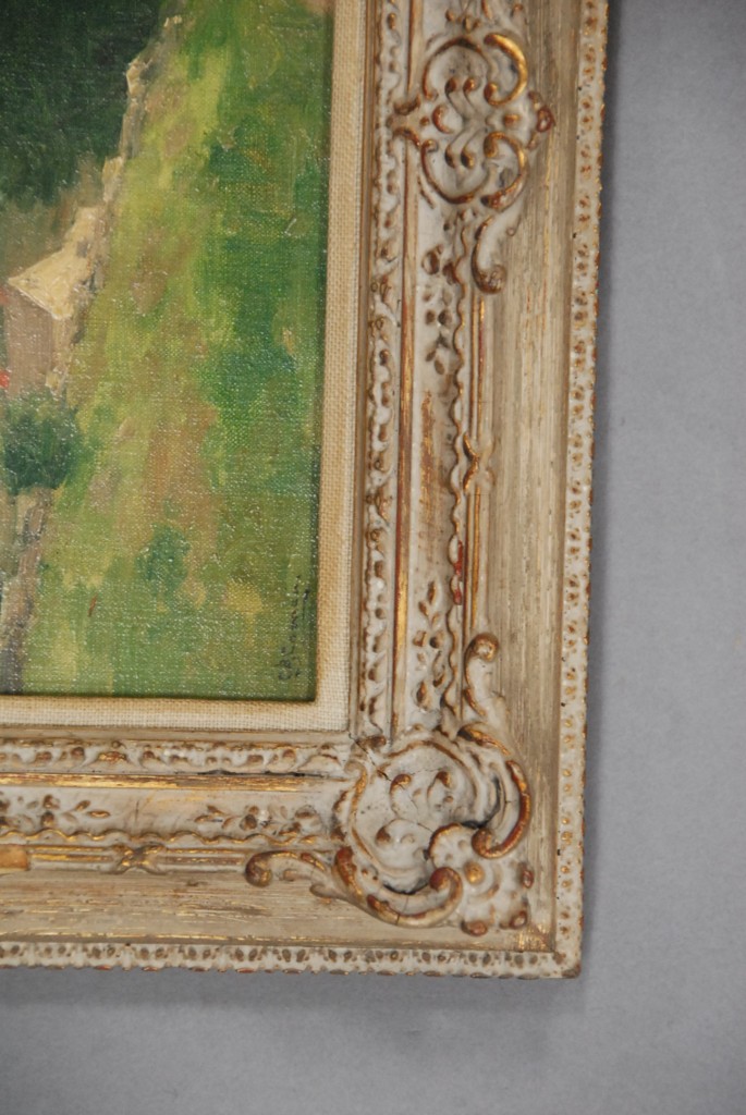 Charlotte Buell Coman 1833-1924 oil on canvas painting having old paper label on reverse A house in the outskirt of New York City Charlotte B. Coman, Price 50