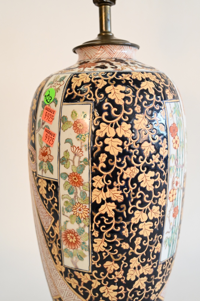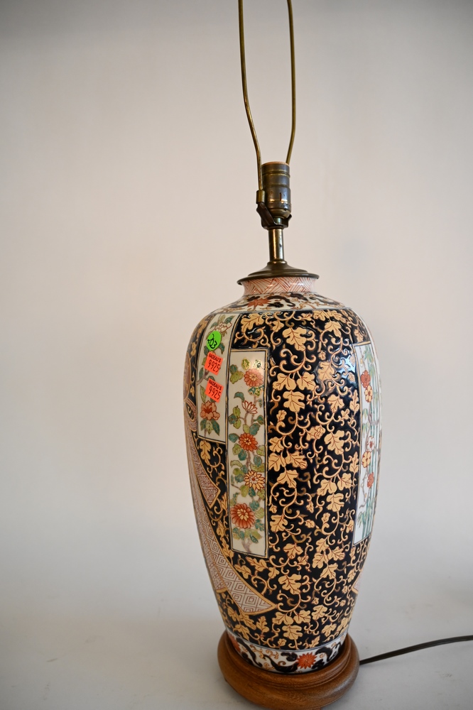 Lot 75: Chinese Porcelain Lamp, along with shade, vase height 16 inches, total height 34 inches.