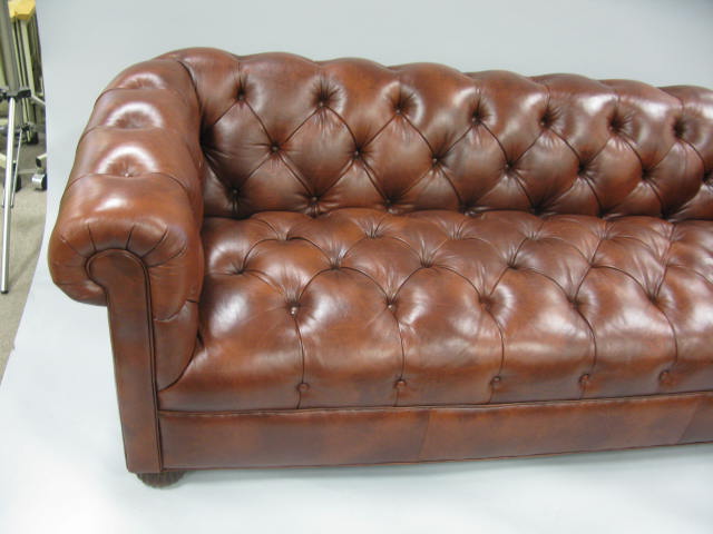 Ethan Allen leather Chesterfield style sofa with tufted back and seat.