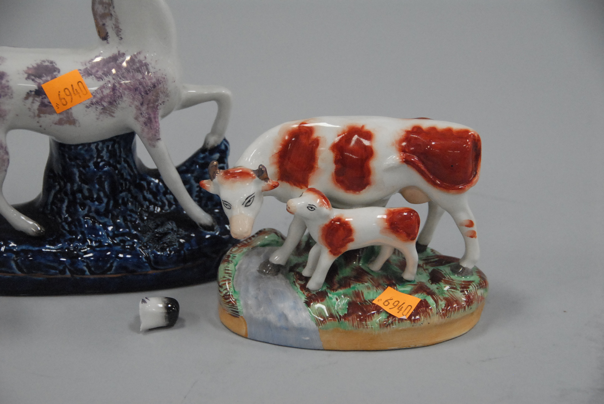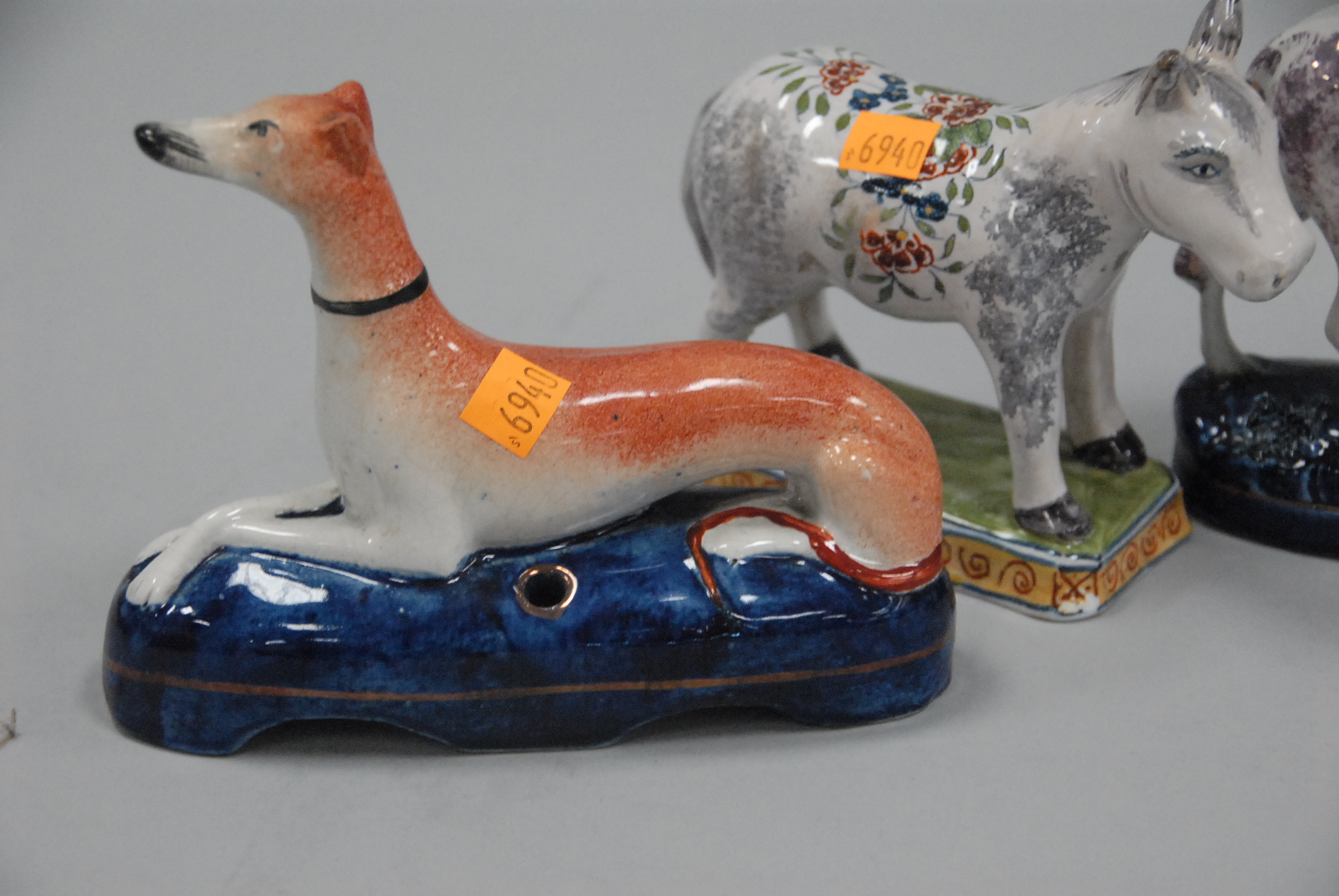 Four piece lot to include three Staffordshire and one French Faience piece one piece as is.