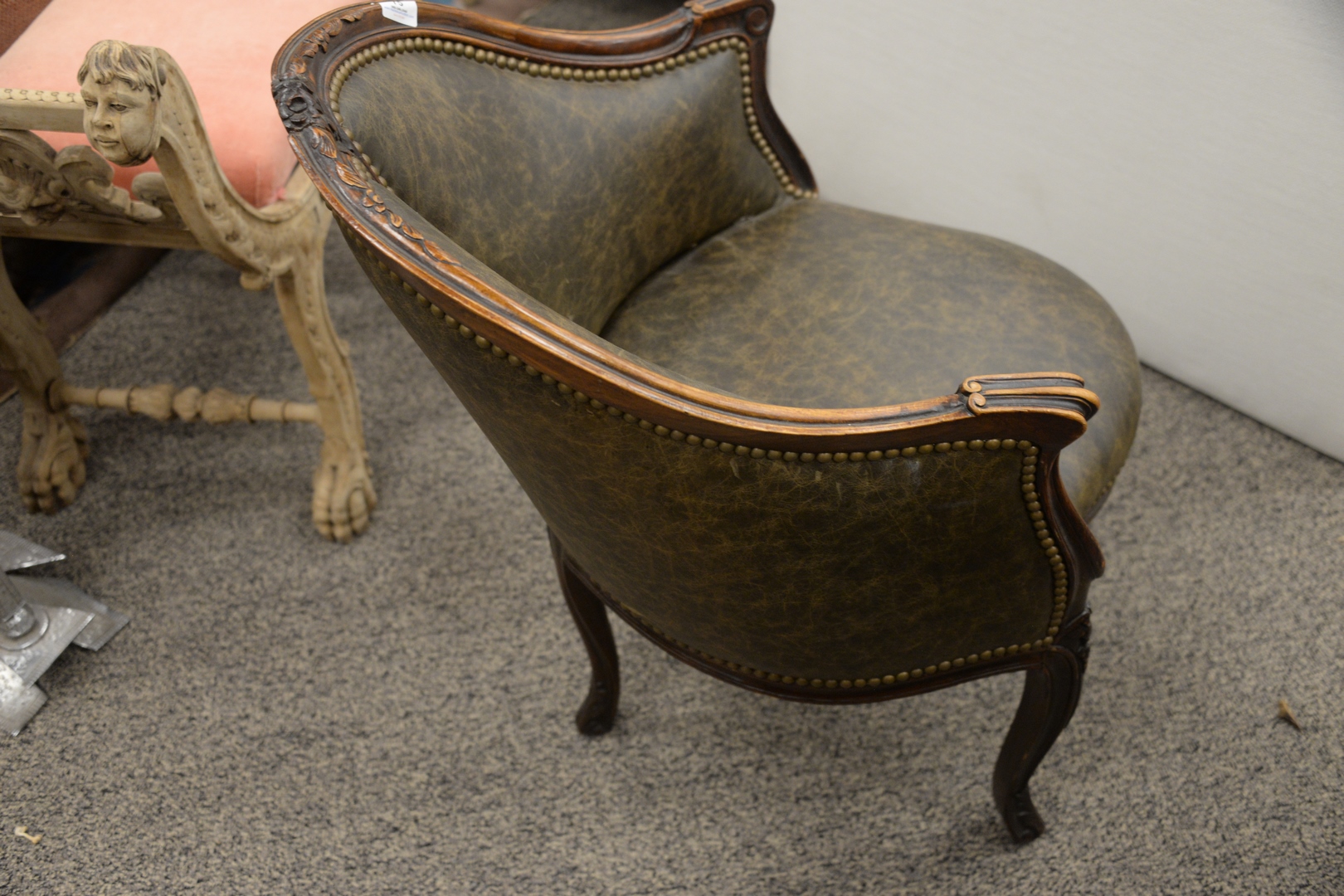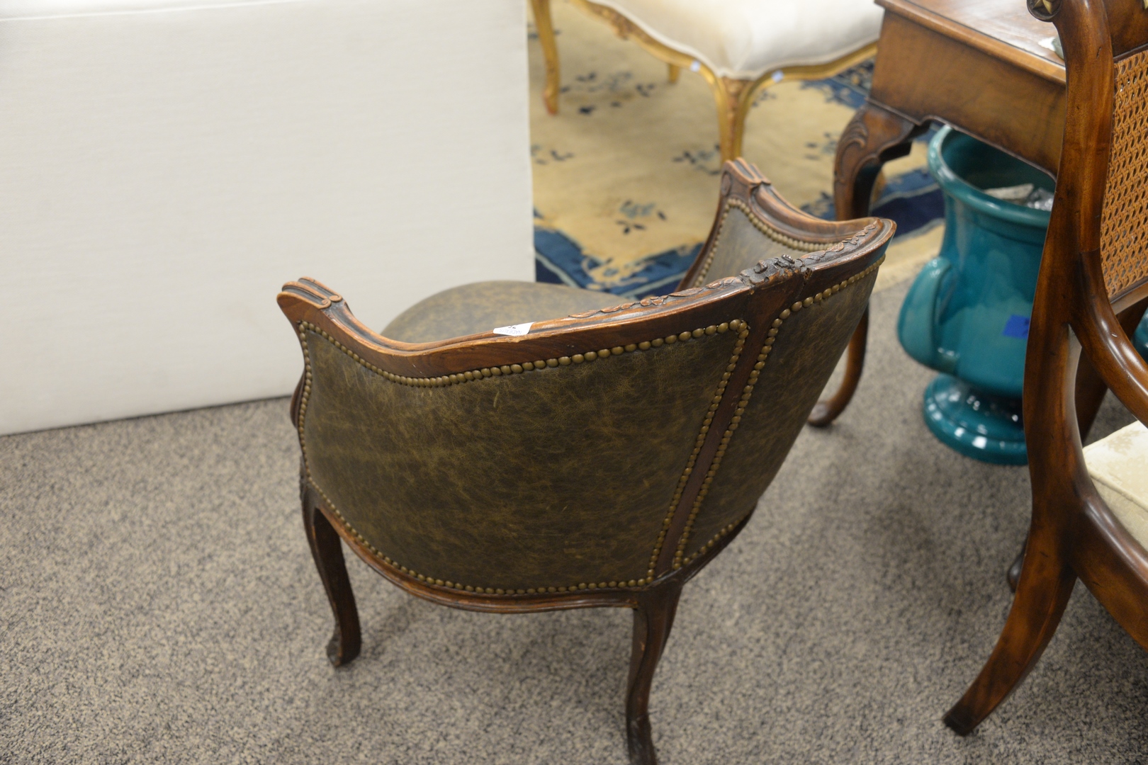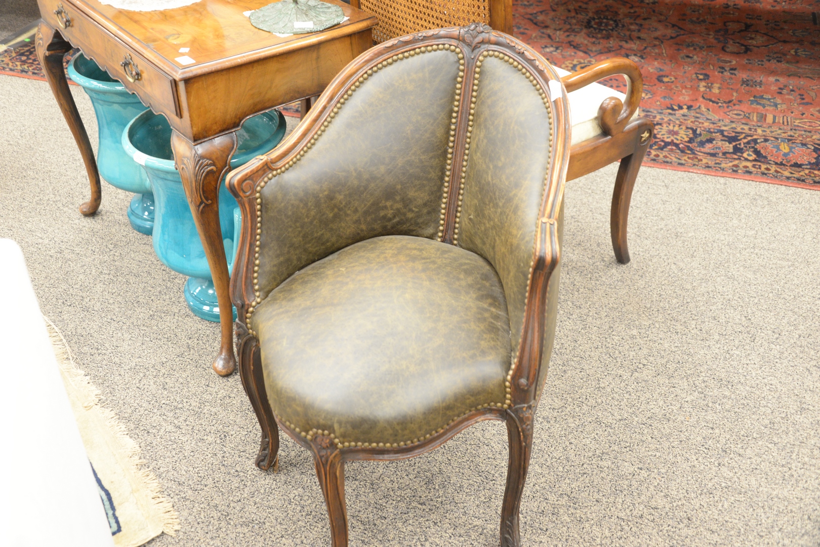 Lot 75: French Walnut Corner Chair, having leather upholstered seat and back, width 24 inches, seat height 18 inches.
