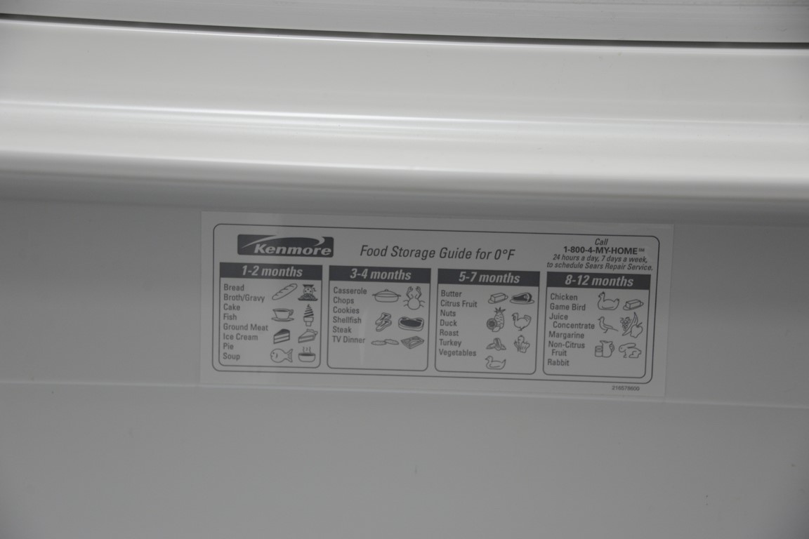 Kenmore upright freezer. ht. 60in. wd. 28in. dp. 26in.