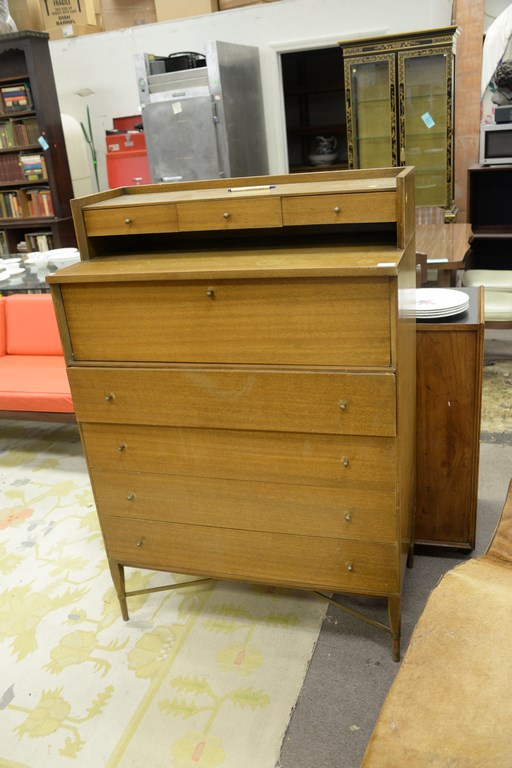 Lot 75: Paul McCobb for Calvin highboy with brass cross stretcher, Grand Rapids, Michigan, ht. 52 1/2 in. wd. 36 in. dp. 19 in.
