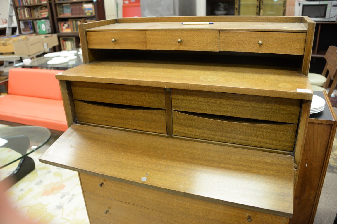 Paul McCobb for Calvin highboy with brass cross stretcher, Grand Rapids, Michigan, ht. 52 1/2 in. wd. 36 in. dp. 19 in.