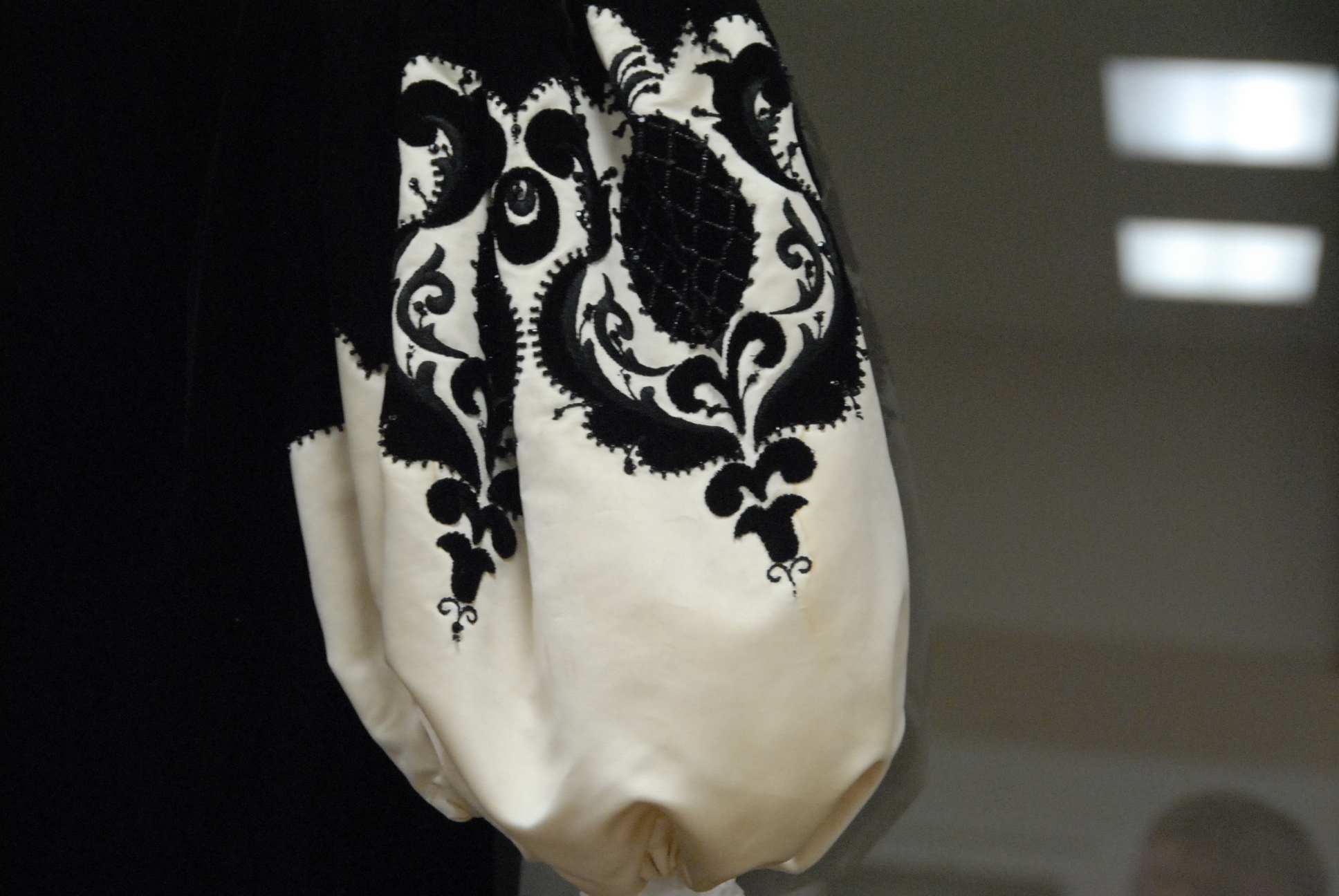 Pierre Balmain velvet full length dress with silk puffy sleeves, having embroidery and beadwork,