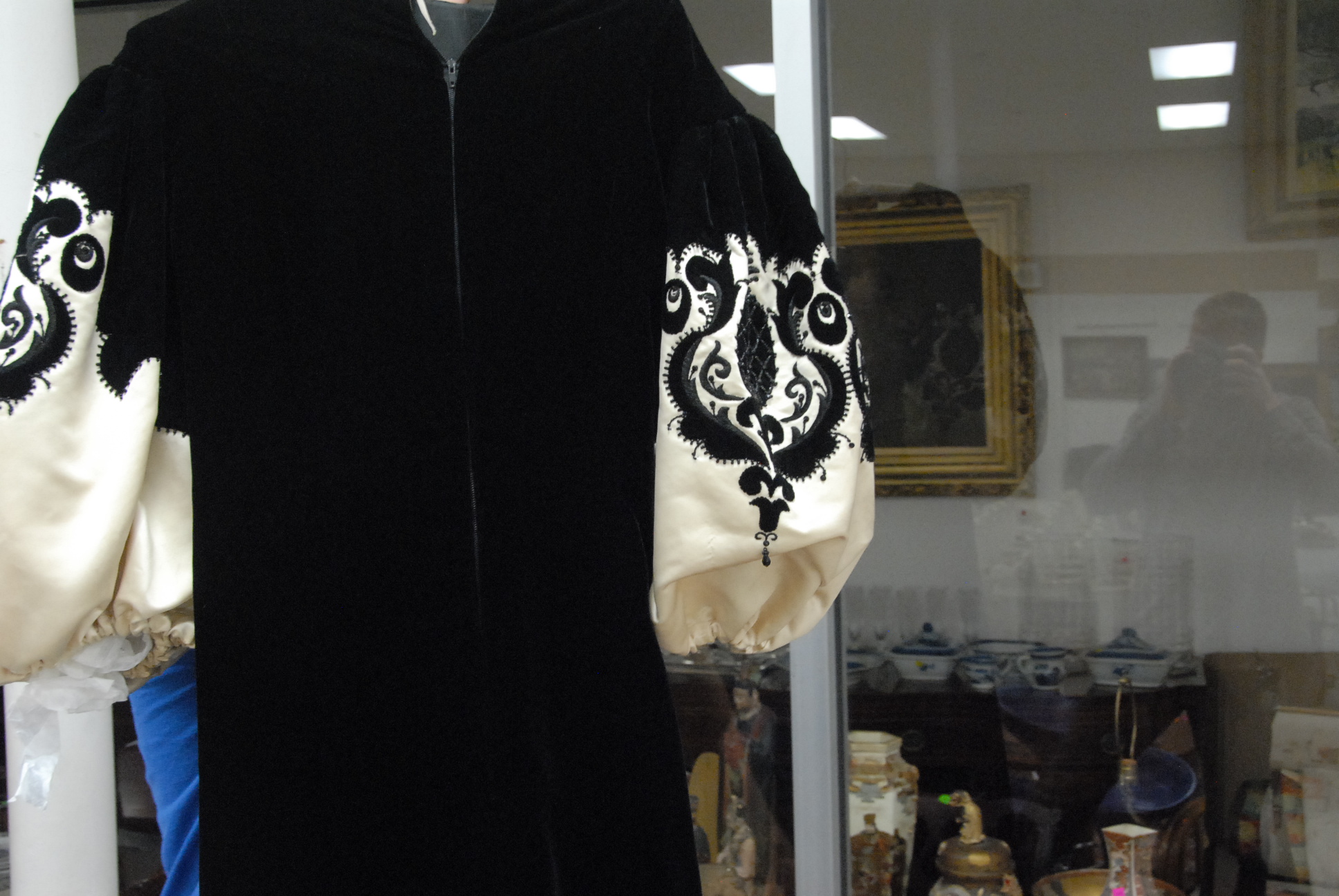 Lot 75: Pierre Balmain velvet full length dress with silk puffy sleeves, having embroidery and beadwork,