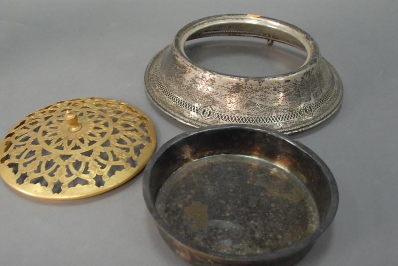 Sterling silver rim on center bowl. 10.6 t oz. dia. 11 1/4in.