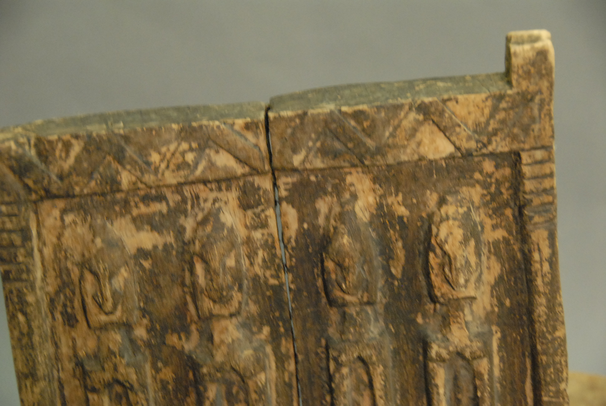 Two piece lot one Dogon from Mali miniture door and a Mossi from mail stool with figural head.