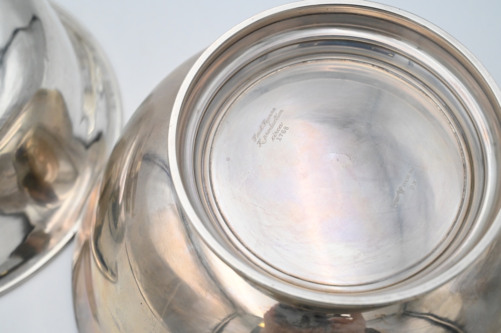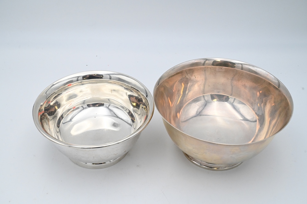 Lot 75: Two Sterling Silver Revere Style Bowls, diameter 8 inches and 9 inches, 42.4 troy ounces