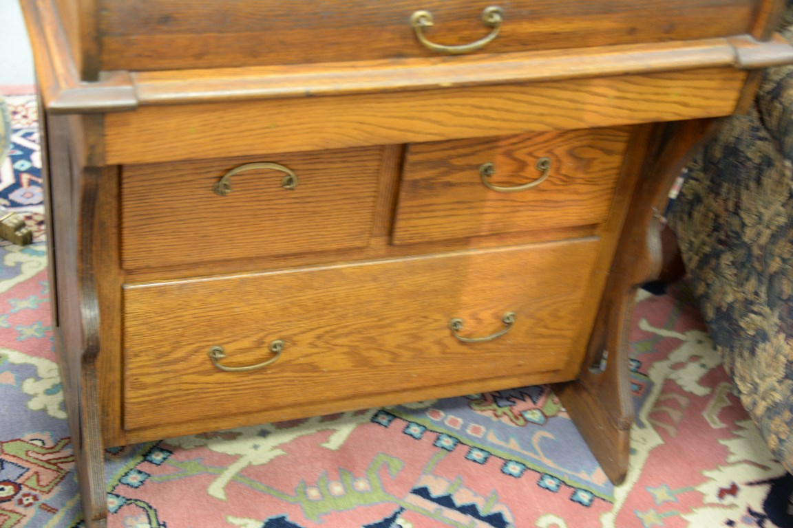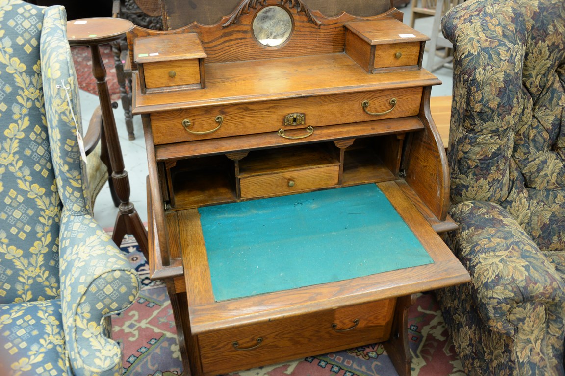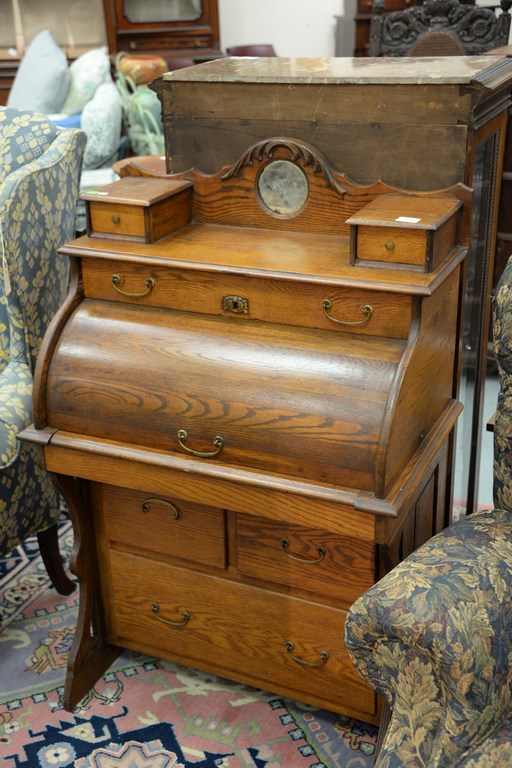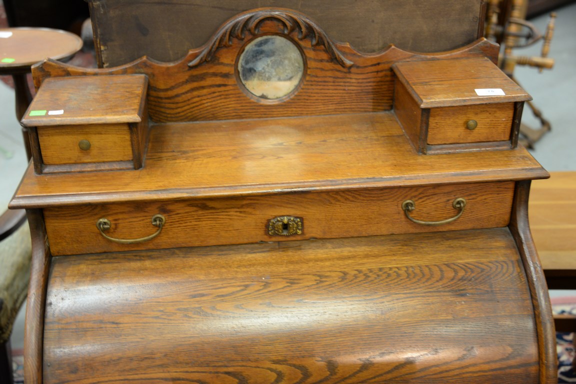 Victorian oak ladies cylinder roll top desk. ht. 47 in. wd. 31 in. dp. 18 in.