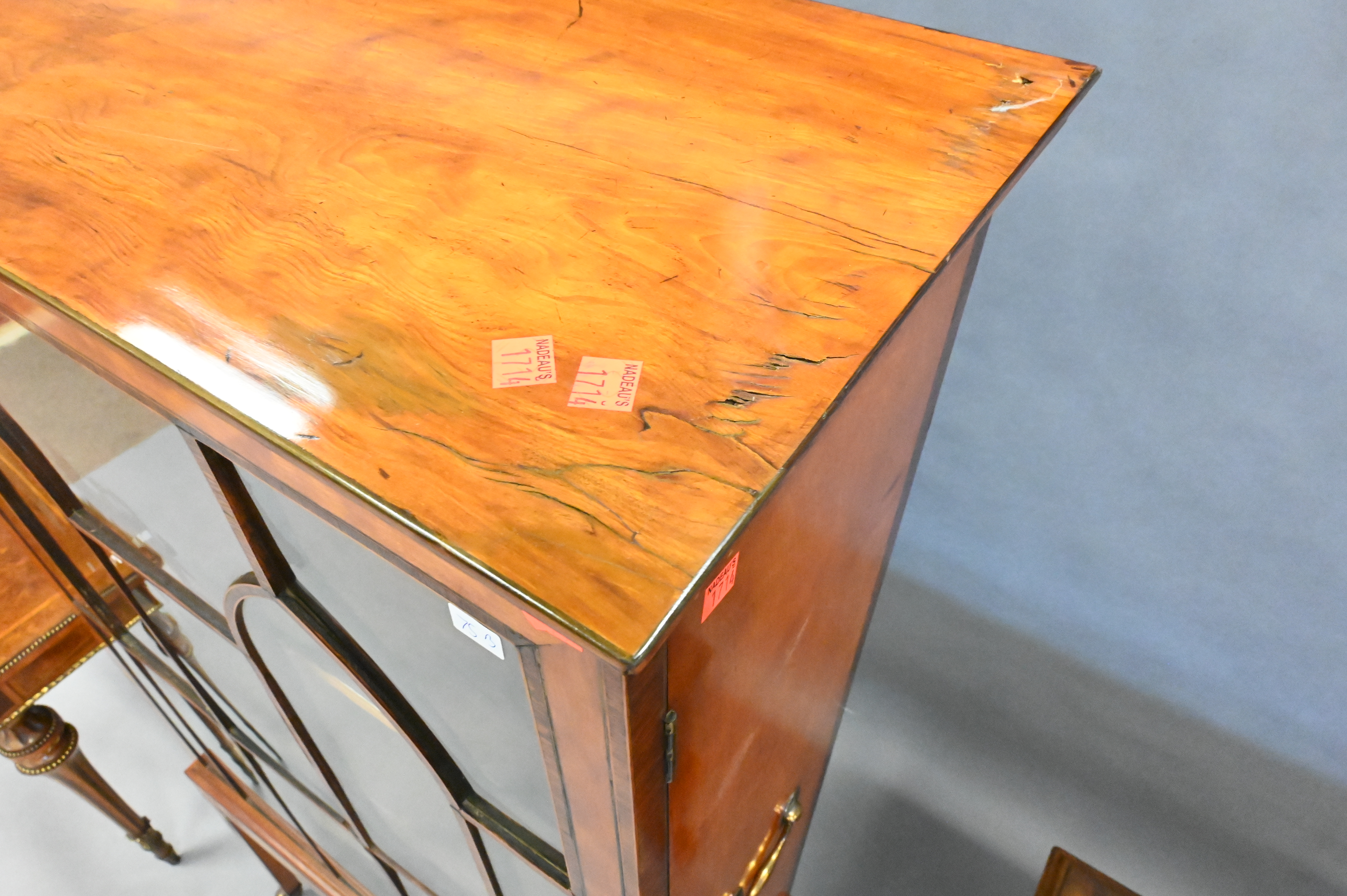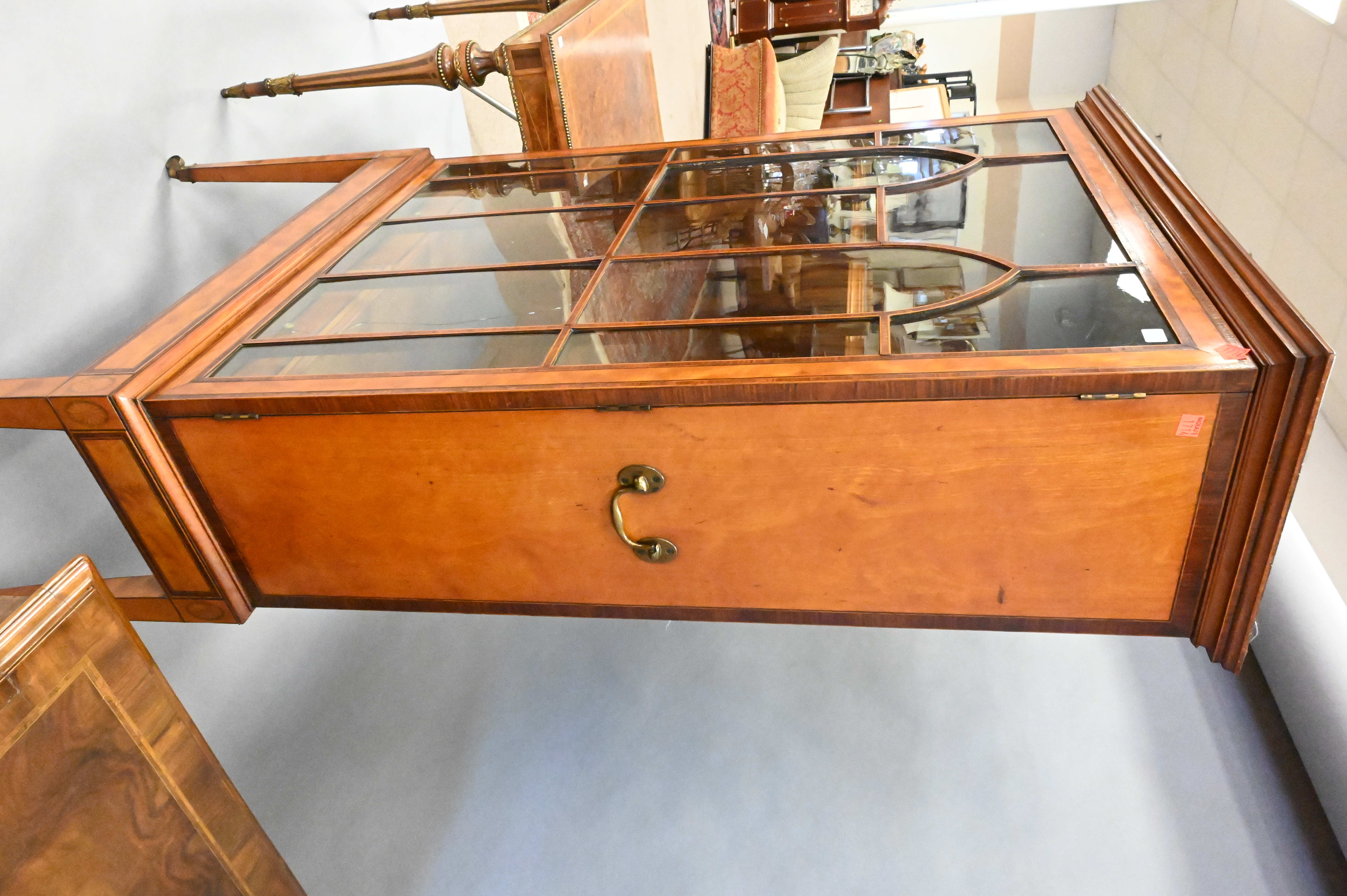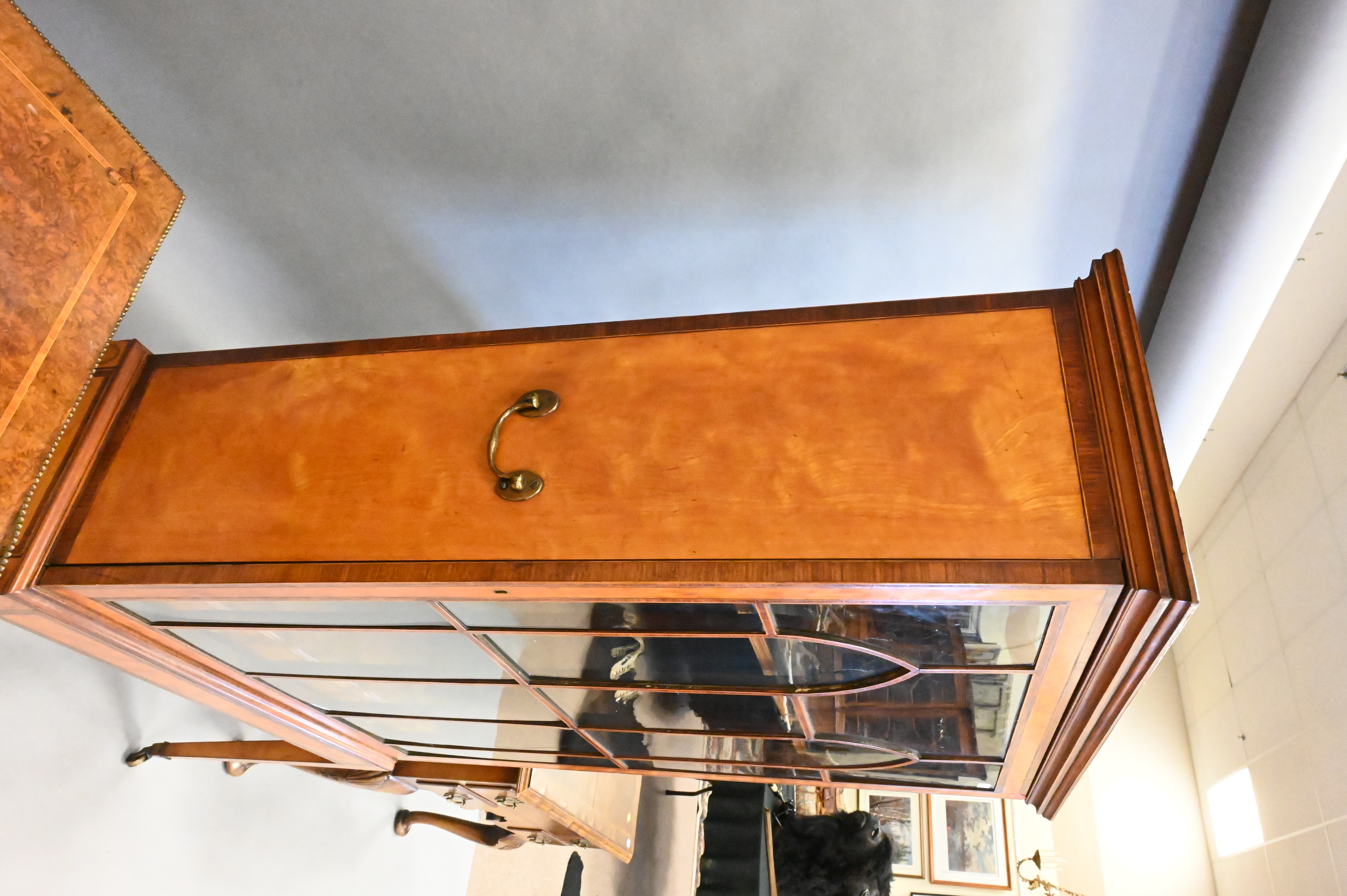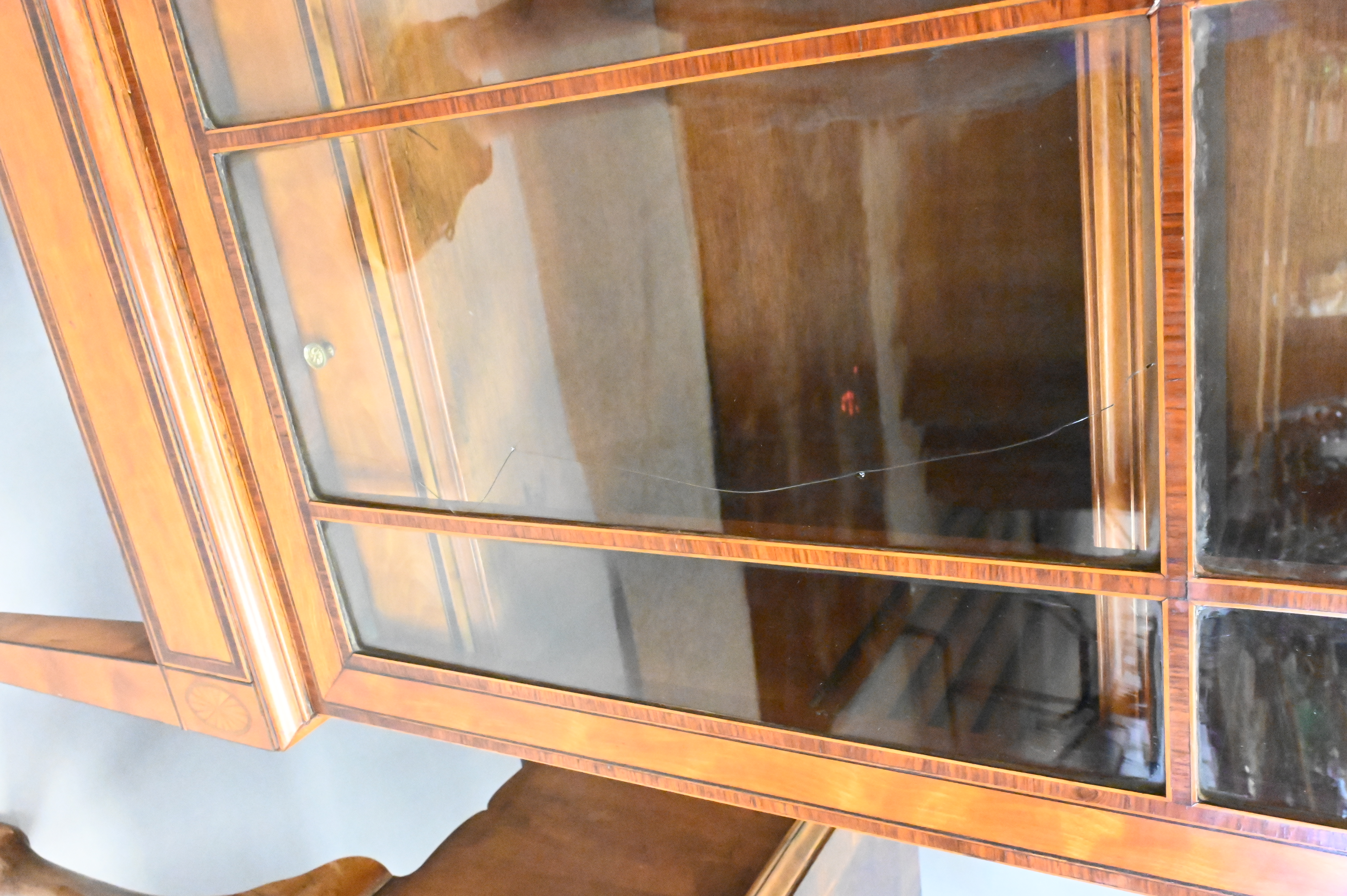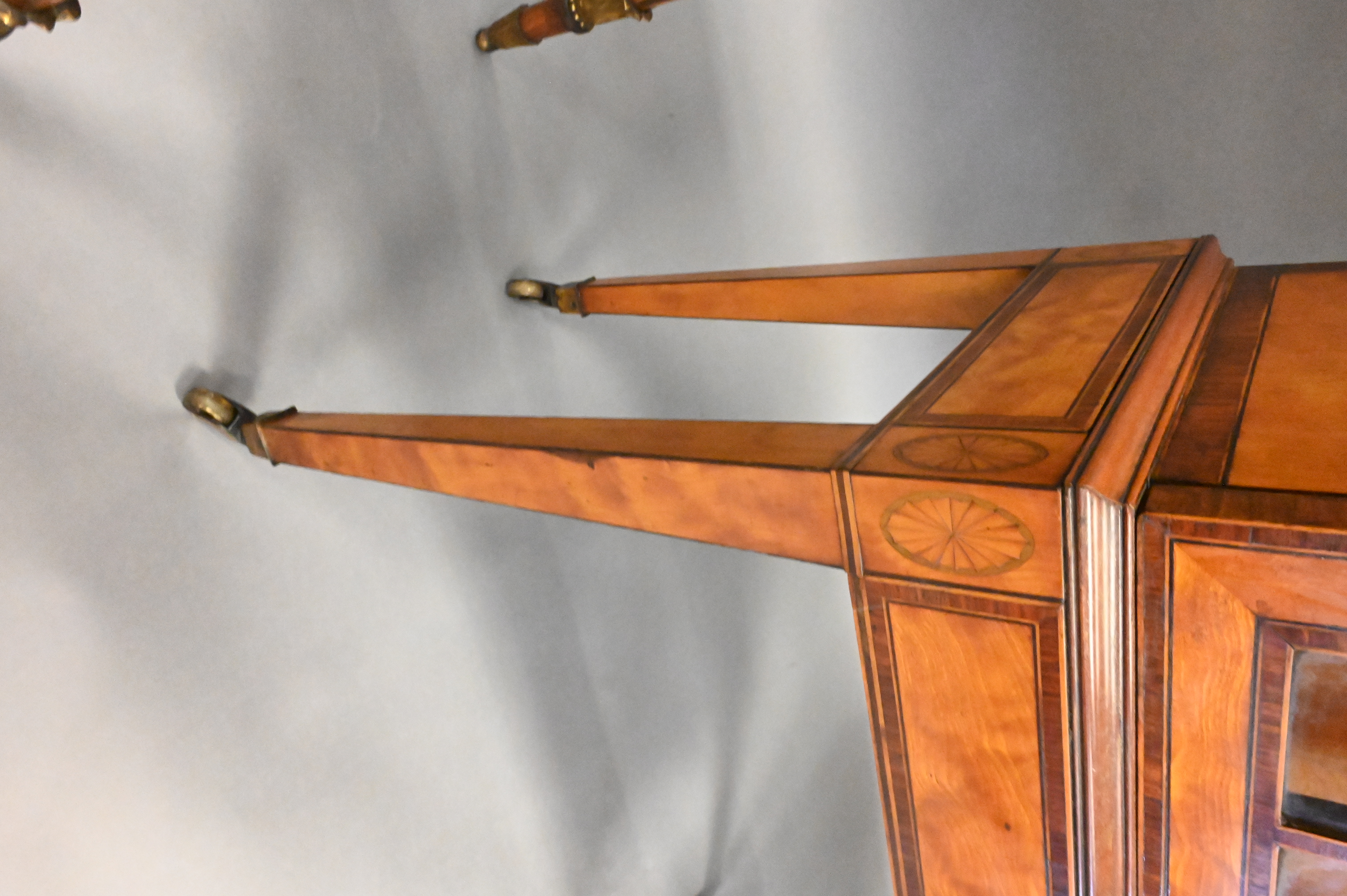 George III Inlaid Satinwood Display Cabinet, height 62 inches, width 32 inches, depth 13 inches.