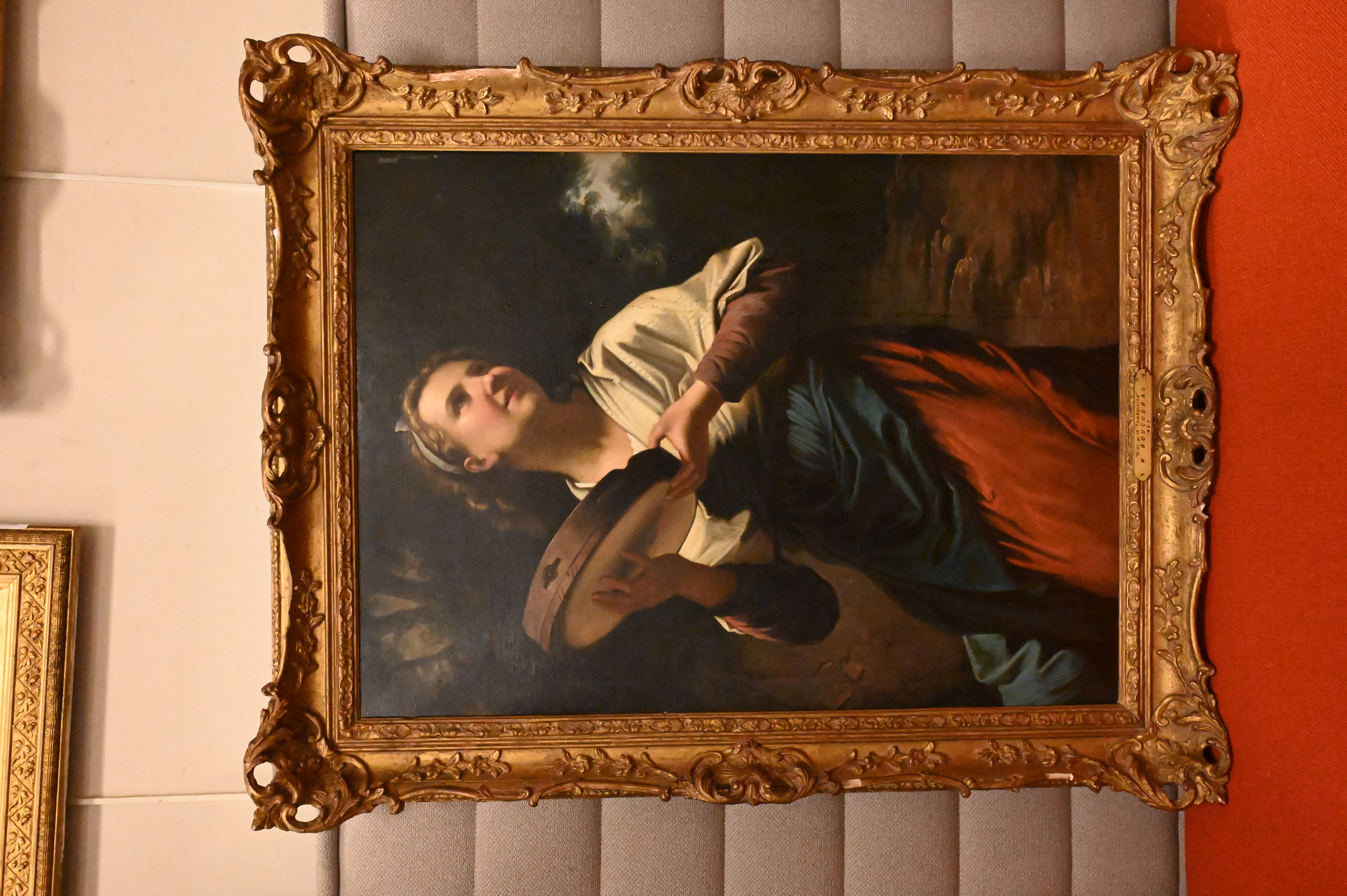 Condition: relined restretched canvas, some paint loss, drips to the right, craquelure
