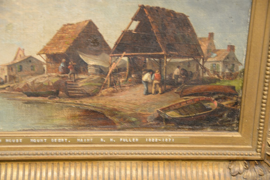 Lot 76: Attributed to Richard Henry Fuller 1822-1871, oil on canvas, Fish House Mount Desert Maine, unsigned, old paper label on verso sol…